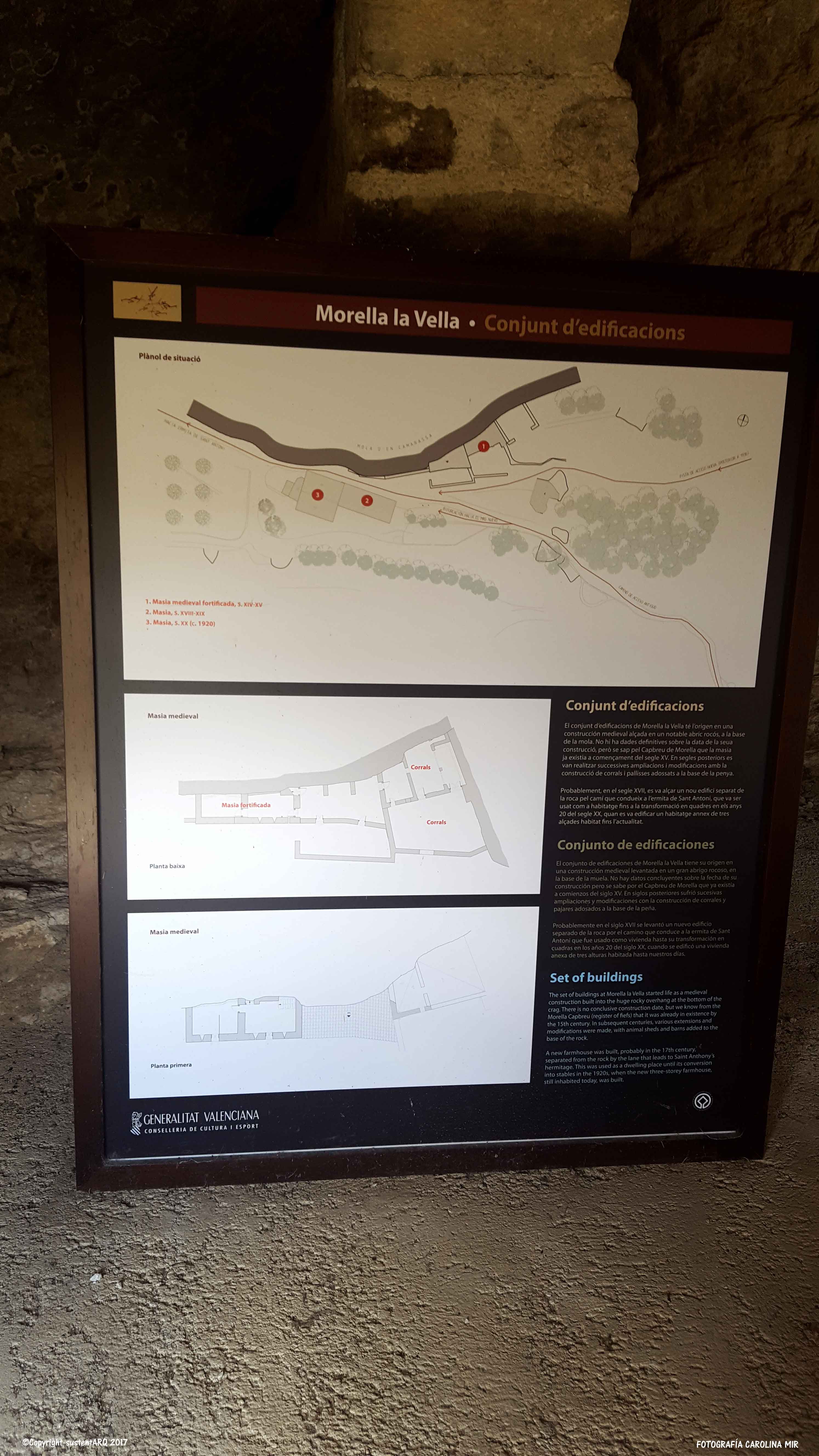EN 1917 JUAN JOSÉ SENENT IBÁÑEZ DESCUBRE EN LOS ALREDEDORES DE LA MASÍA DE MORELLA LA VELLA, DOS CAVIDADES CON PINTURAS RUPESTRES. ÉSTAS Y OTRAS PINTURAS MÁS QUE SE HALLARON, PERTENECEN AL ARTE LEVANTINO Y AL ARTE ESQUEMÁTICO. SE TRATA DE ESCENAS DE CAZA, CON FIGURAS HUMANAS Y ANIMALES. EN 1998 SE CATALOGARON COMO BIENES DE INTERÉS CULTURAL. Y EN EL AÑO 2000 LA GENERALITAT VALENCIANA ADQUIRIÓ MORELLA LA VELLA PARA PRESERVAR ESTE HALLAZGO Y PROMOVER SU USO PÚBLICO.