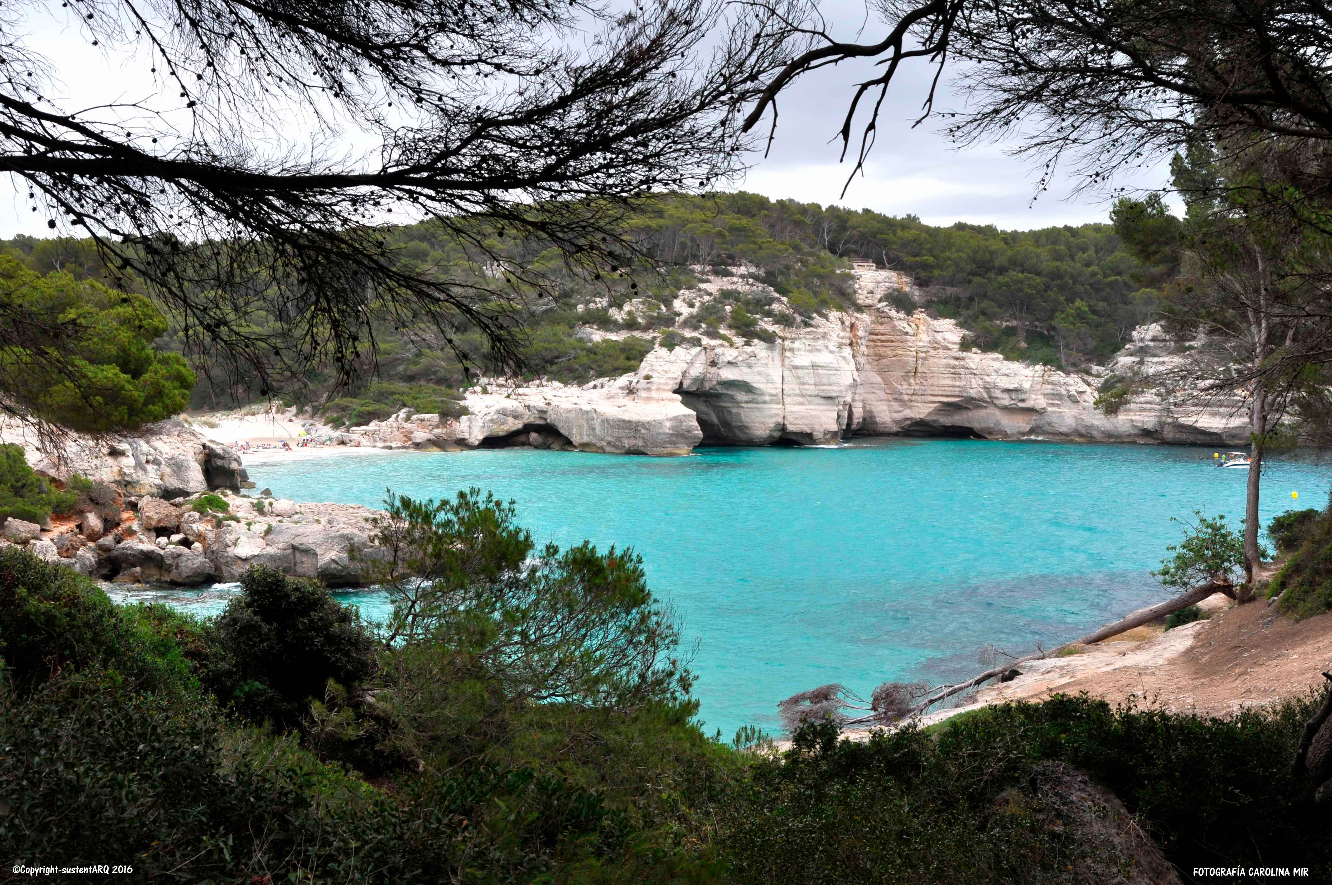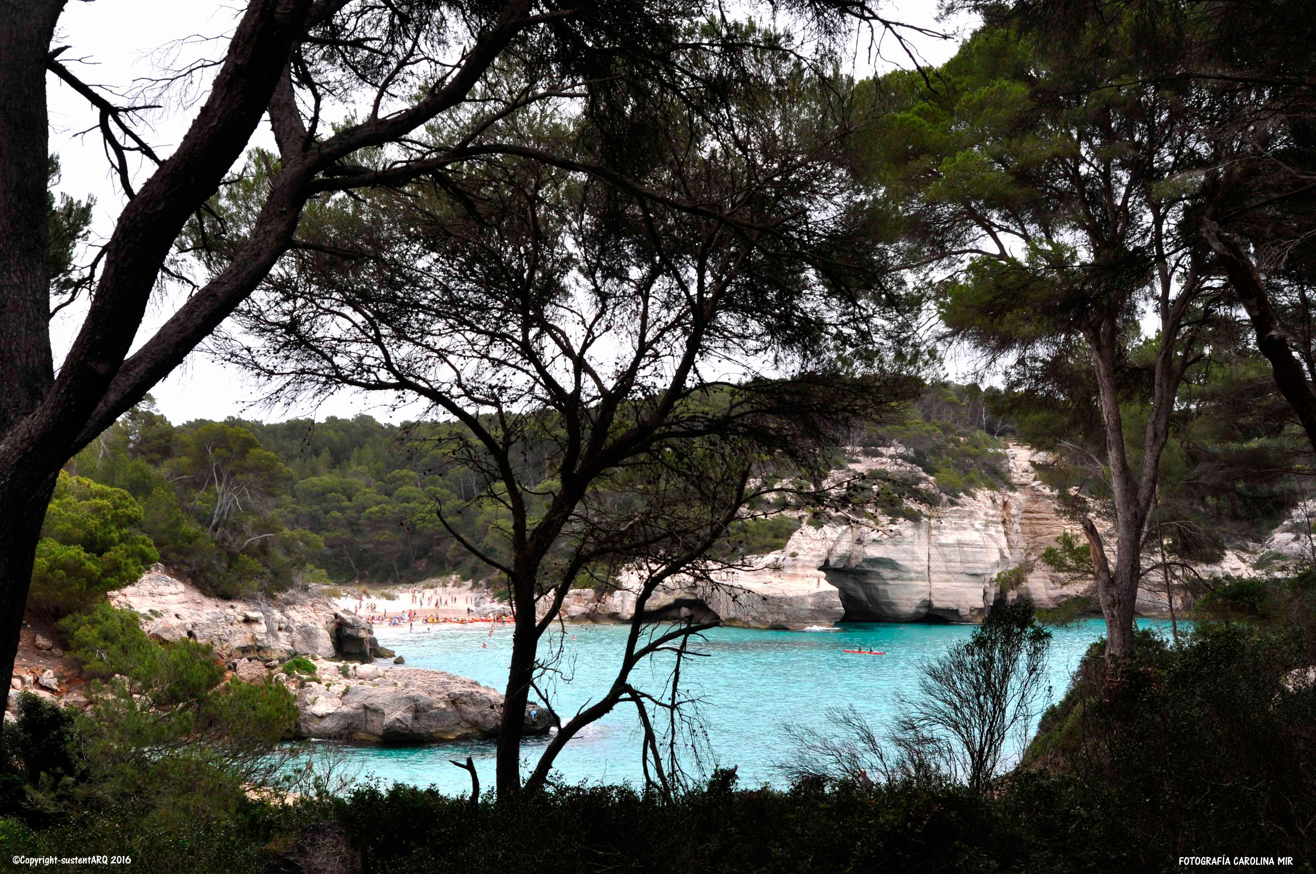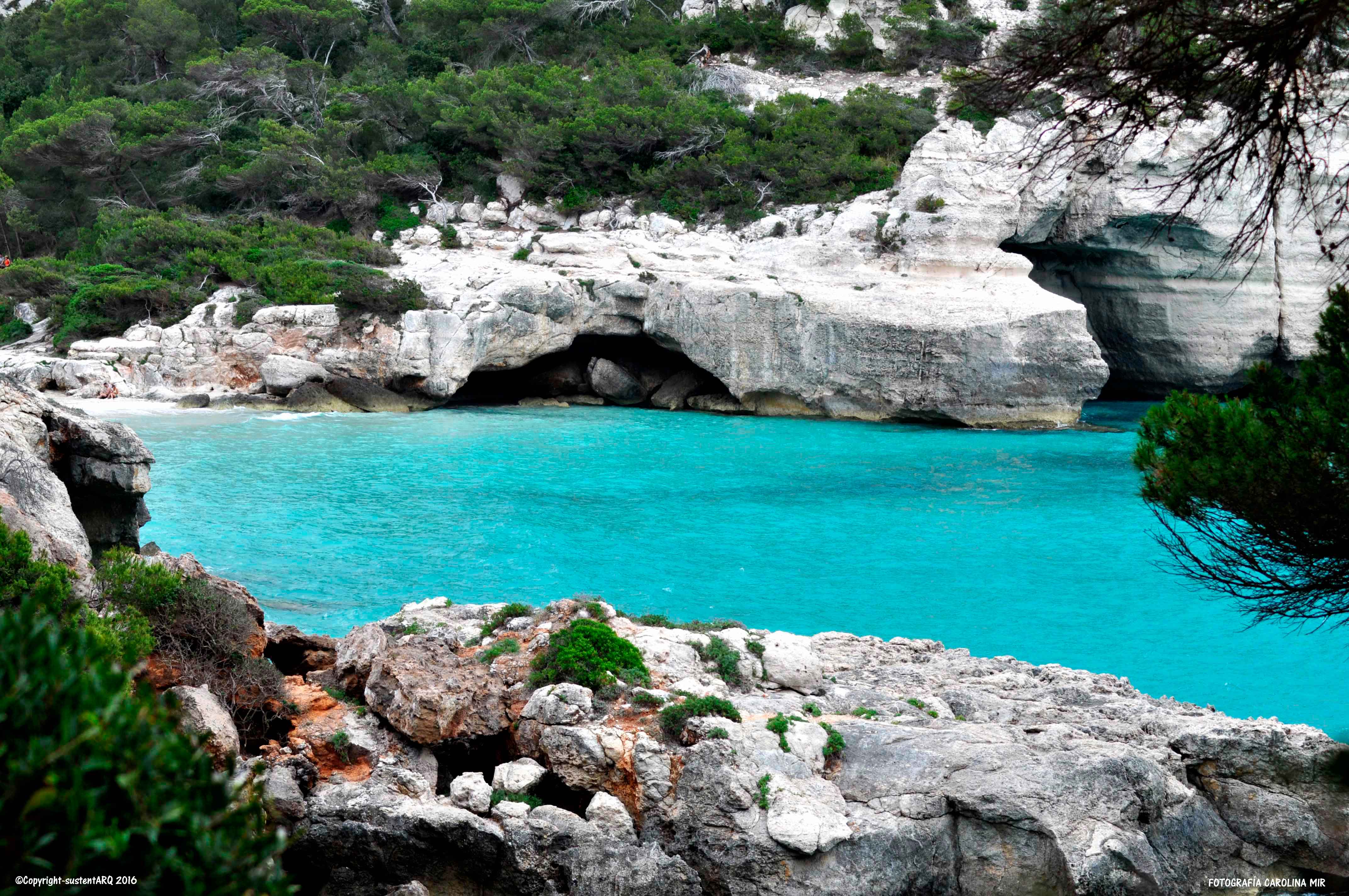 Yo que soy de Valencia, cuando me asomo a estas calas y veo sus montañas todas verdes, llenas de árboles y matorrales, y donde la vegetación densa domina sobre las construcciones (exceptuando algunos casos lamentables), cierro los ojos y me transporto a mi tierra y me la imagino hace unos 50años, cuando aún no sabíamos de boom urbanístico y de la burbuja inmobiliaria, y veo nuestras montañas de Cullera, de Jávea, de Dénia, de Altea,…, como éstas de Menorca. Impresionantes playas de arena fina blanca y aguas cristalinas, rodeadas de vegetación y no montañas cortadas, bosques arrasados y urbanizaciones que llegan hasta la misma orilla del mar…