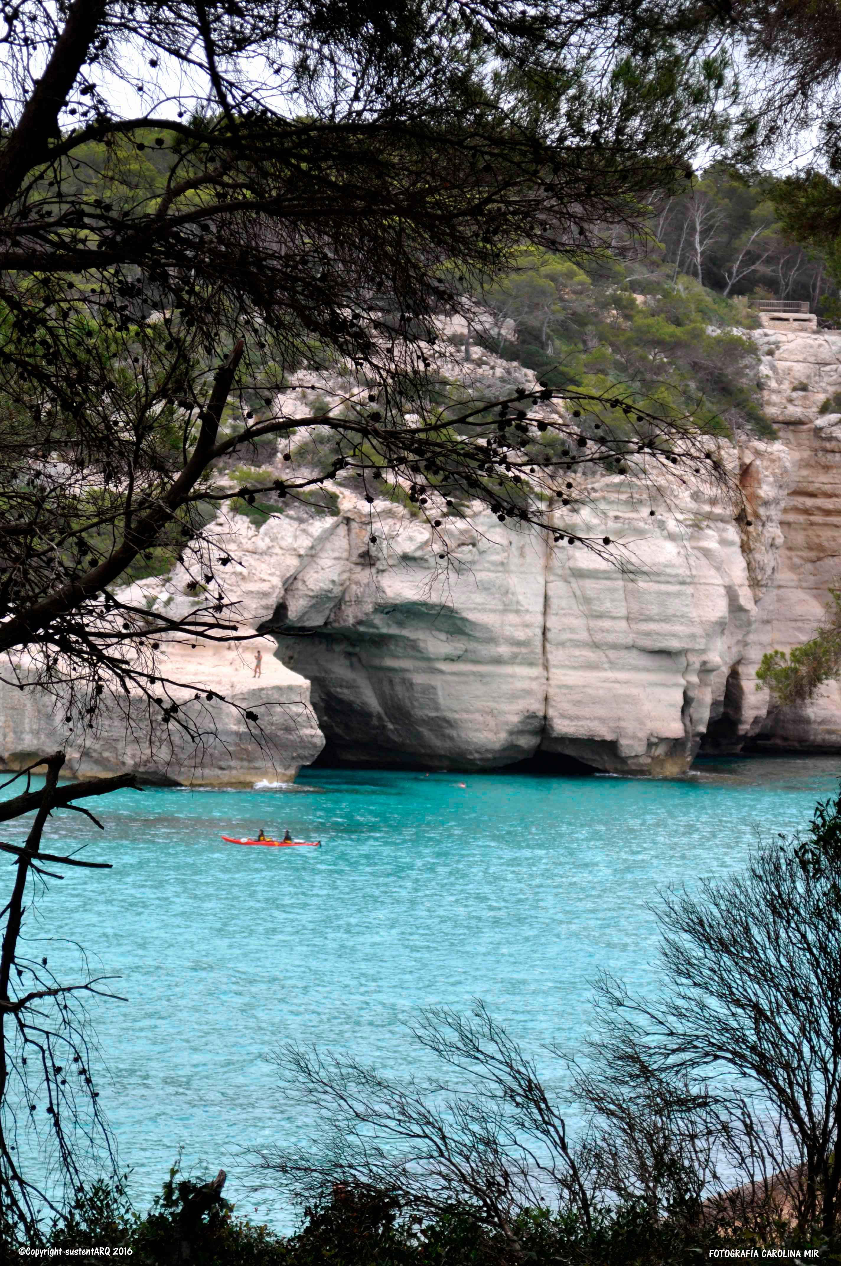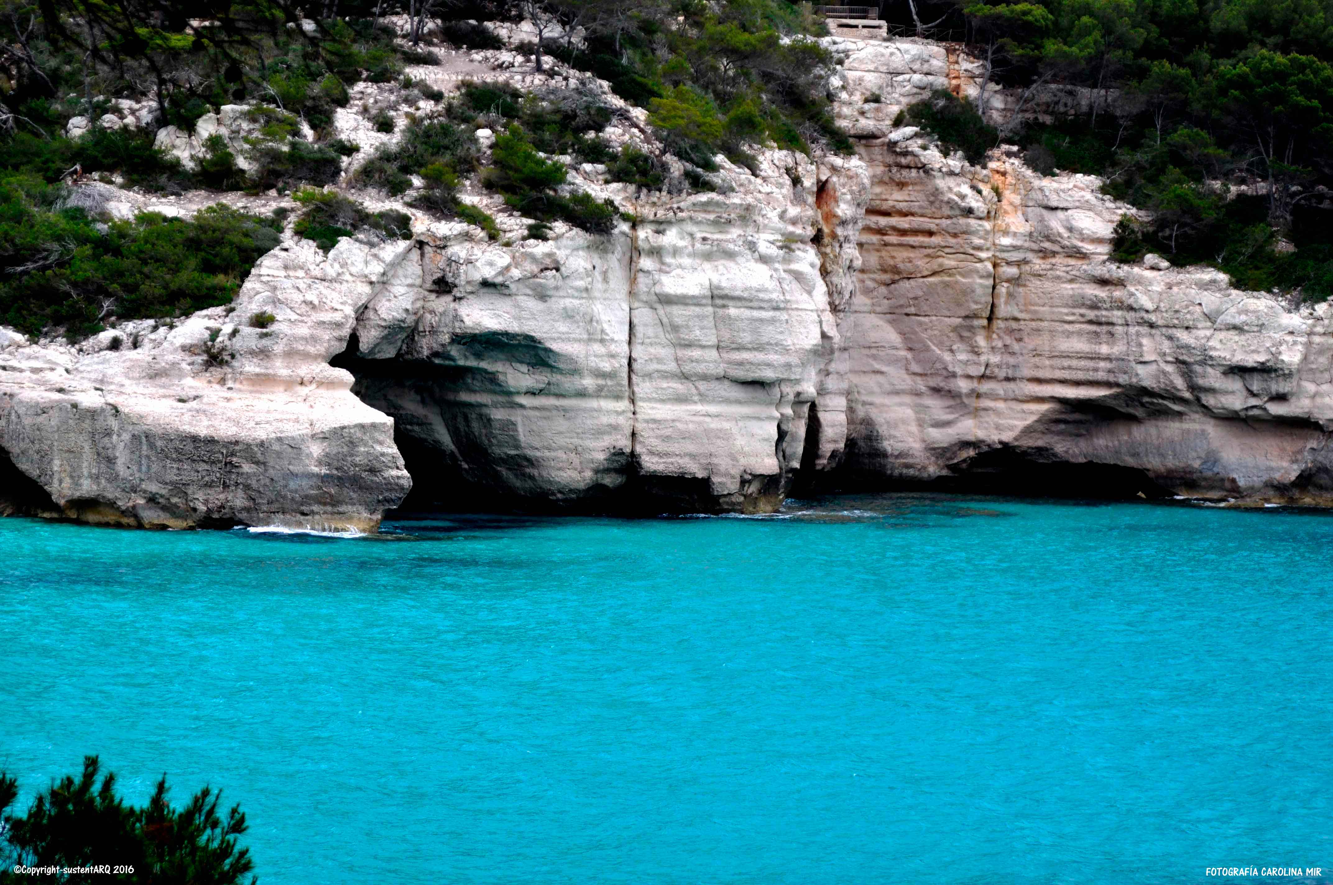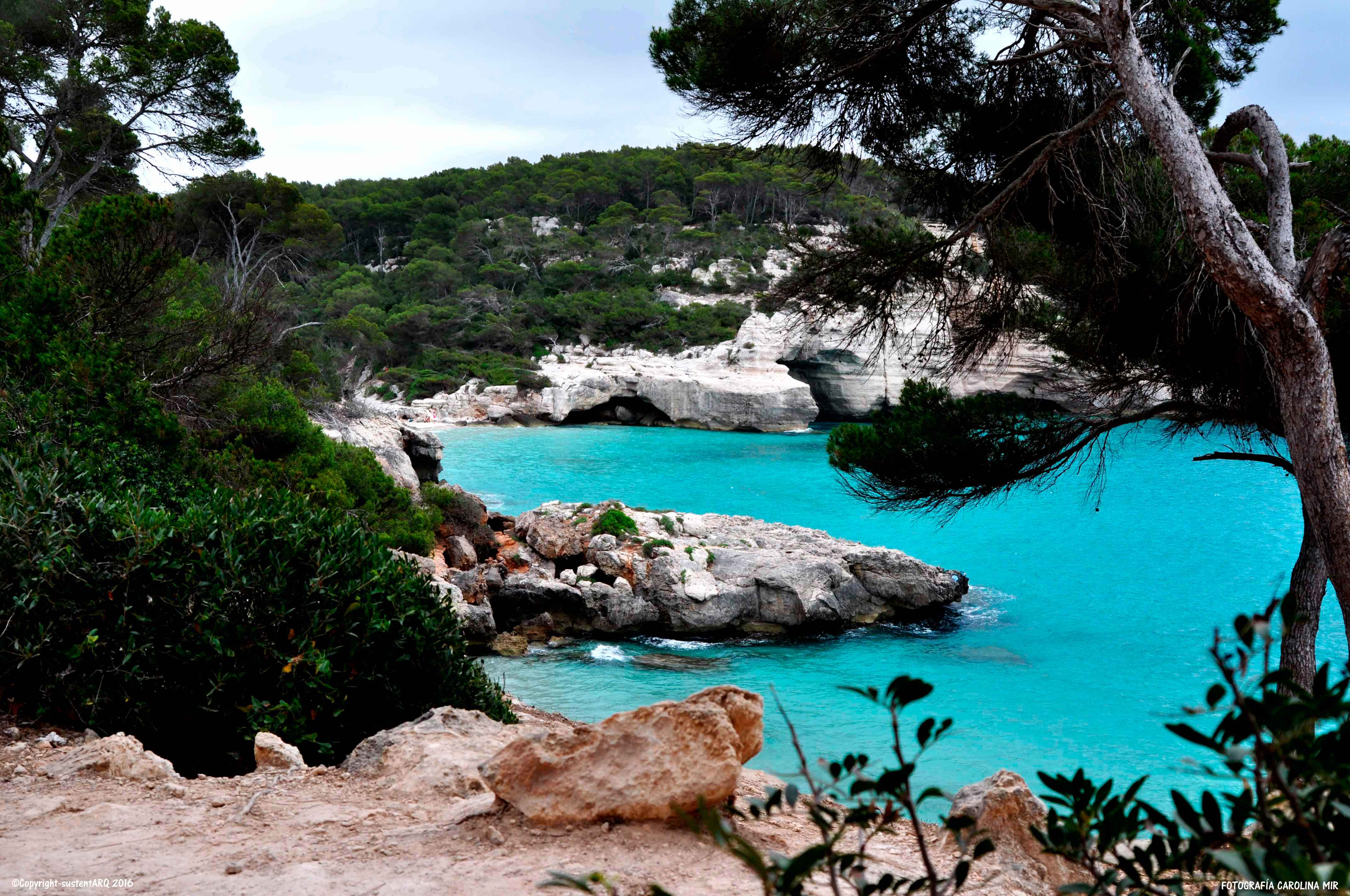 Yo que soy de Valencia, cuando me asomo a estas calas y veo sus montañas todas verdes, llenas de árboles y matorrales, y donde la vegetación densa domina sobre las construcciones (exceptuando algunos casos lamentables), cierro los ojos y me transporto a mi tierra y me la imagino hace unos 50años, cuando aún no sabíamos de boom urbanístico y de la burbuja inmobiliaria, y veo nuestras montañas de Cullera, de Jávea, de Dénia, de Altea,…, como éstas de Menorca. Impresionantes playas de arena fina blanca y aguas cristalinas, rodeadas de vegetación y no montañas cortadas, bosques arrasados y urbanizaciones que llegan hasta la misma orilla del mar…