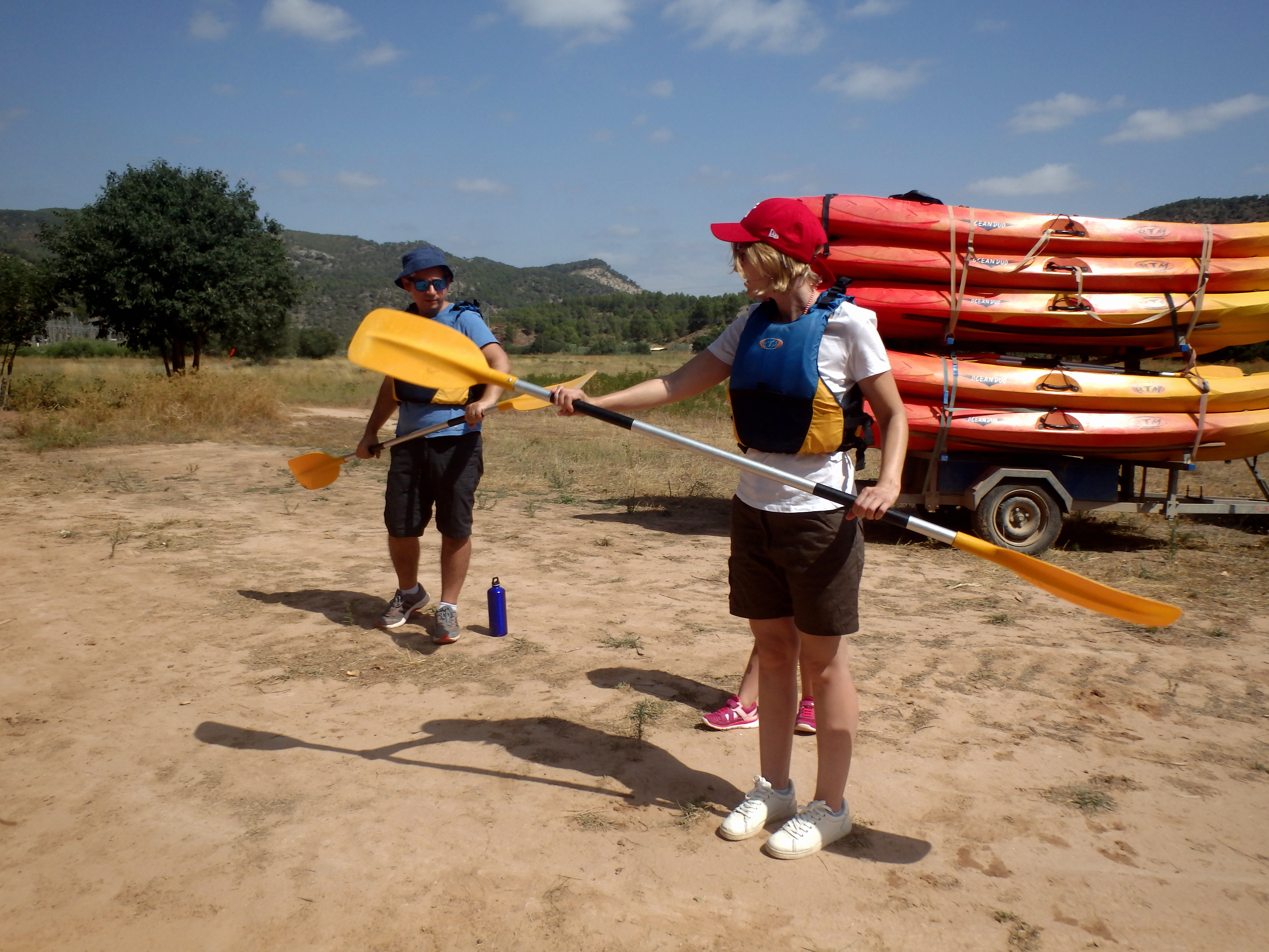 El primer requisito es saber nadar por si te caes al agua, que no tiene porqué, pero te puede pasar. Y si te caes al río, aunque llevas chaleco salvavidas, tienes que estar preparado. Porque además tienes que estar en el agua hasta que gires la piragua y vuelvas a subir. Los nanos pues, tienen que saber nadar.