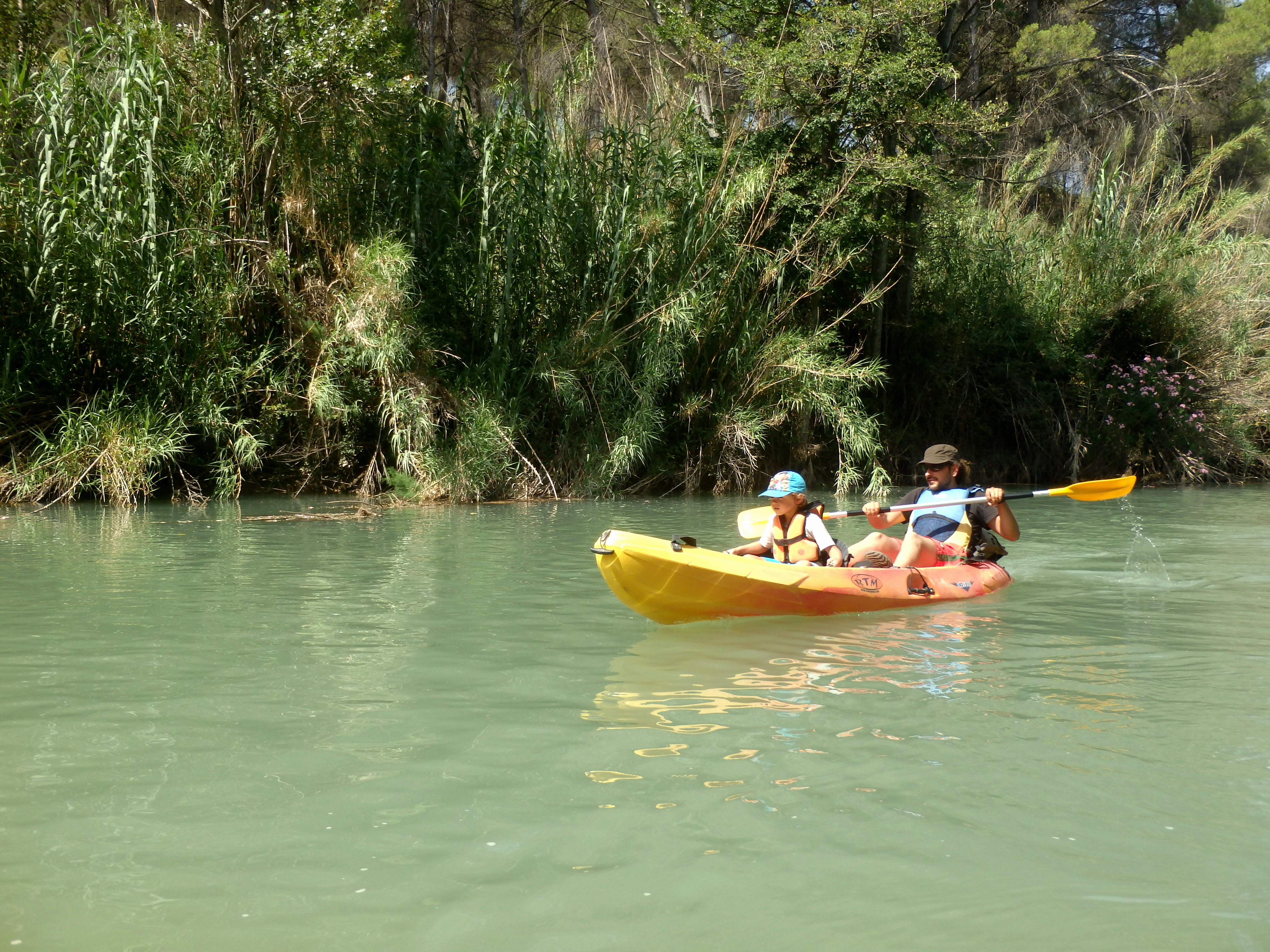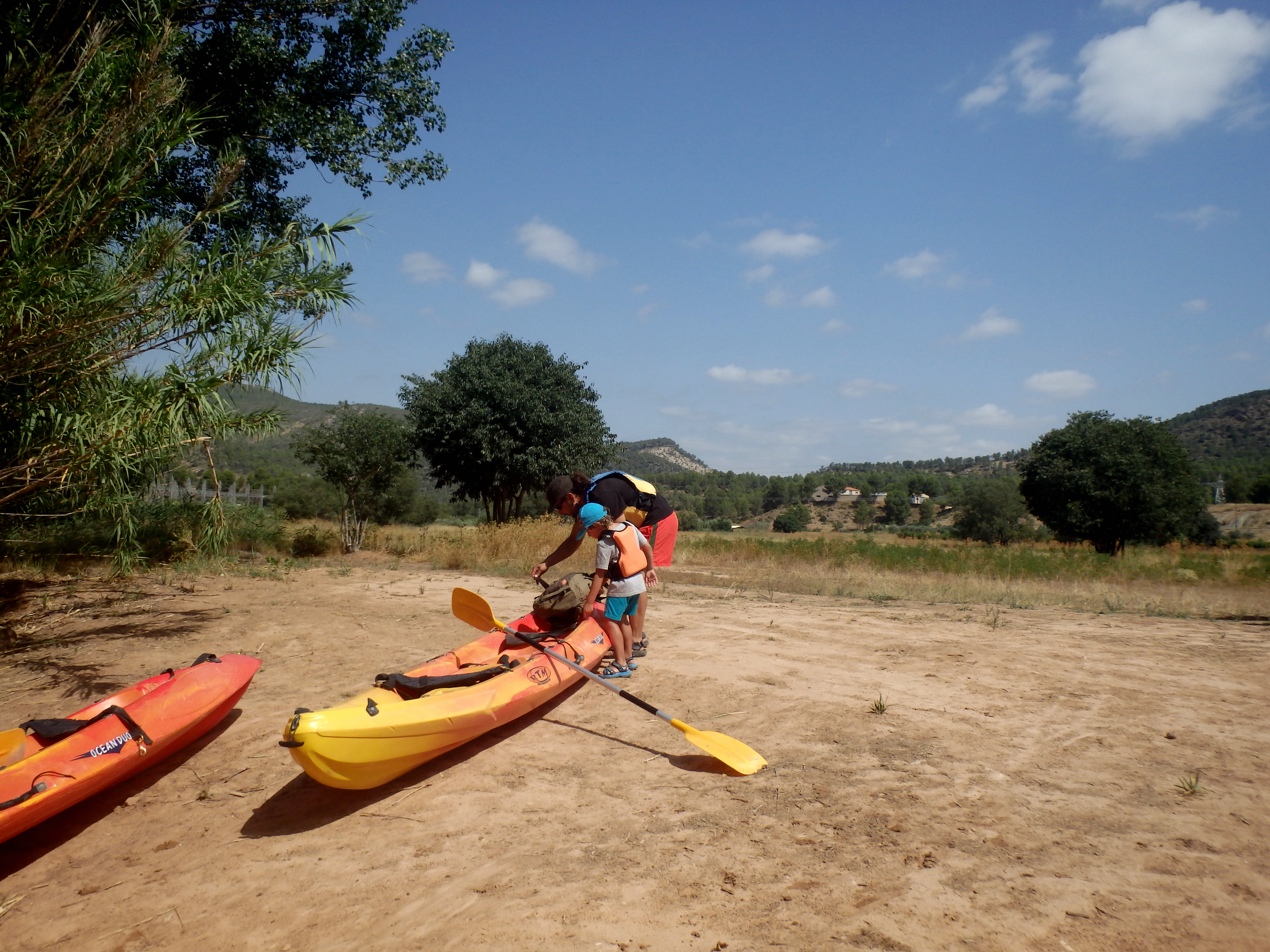 El recorrido es de unos 5km. Si el nano puede remar será de gran ayuda para el adulto. Si no, desayuna fuerte que vas a hacer un buen ejercicio de brazos tú solo.
