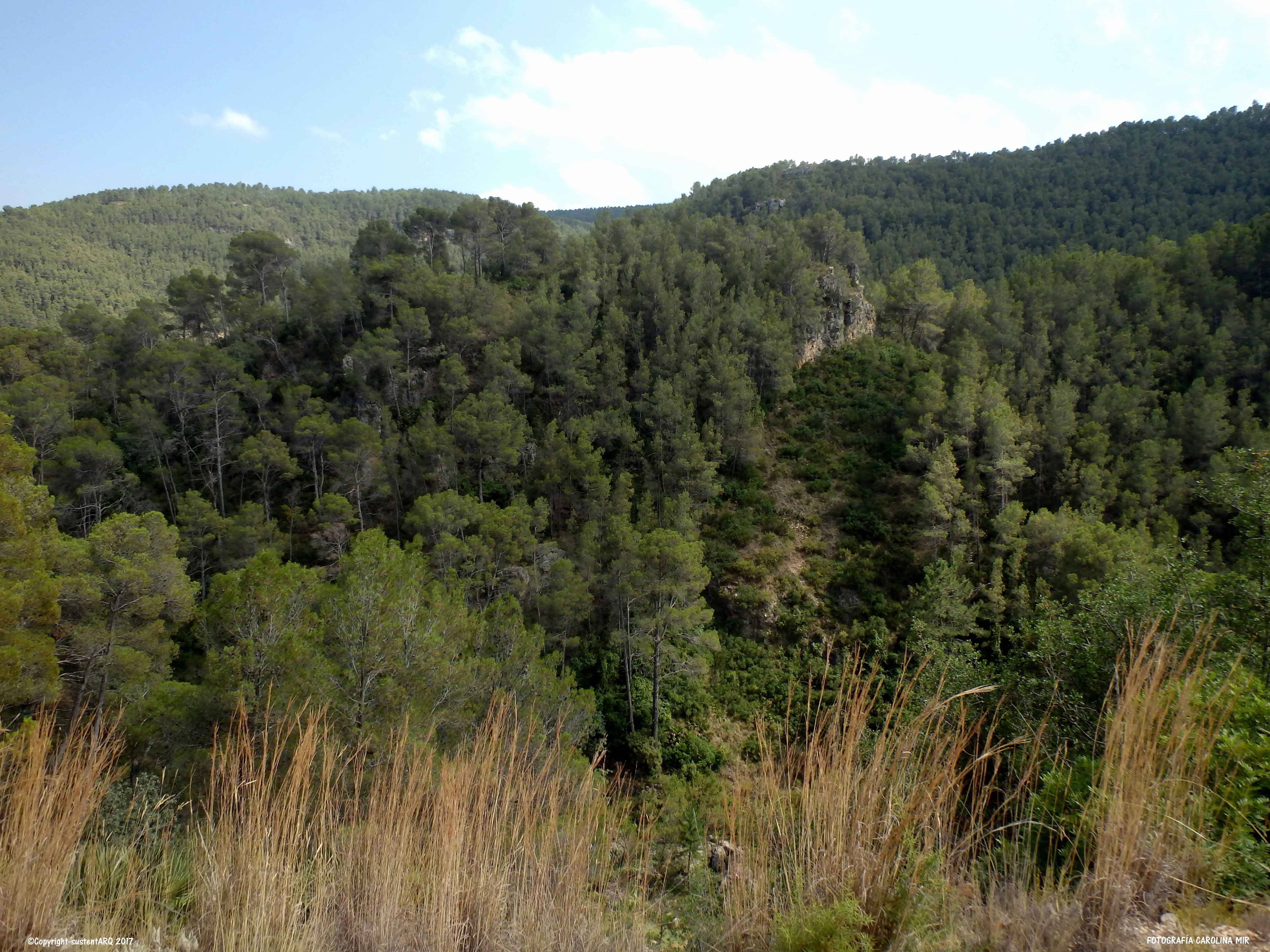 Para iniciar la ruta, primero hay que adentrase en el bosque durante unos 15 km desde el desvío a mano izquierda, justo antes de llegar a Bicorp. El paisaje es una chulada. Da gusto ver un bosque tan grande y tan verde hoy en día, aquí en Valencia.