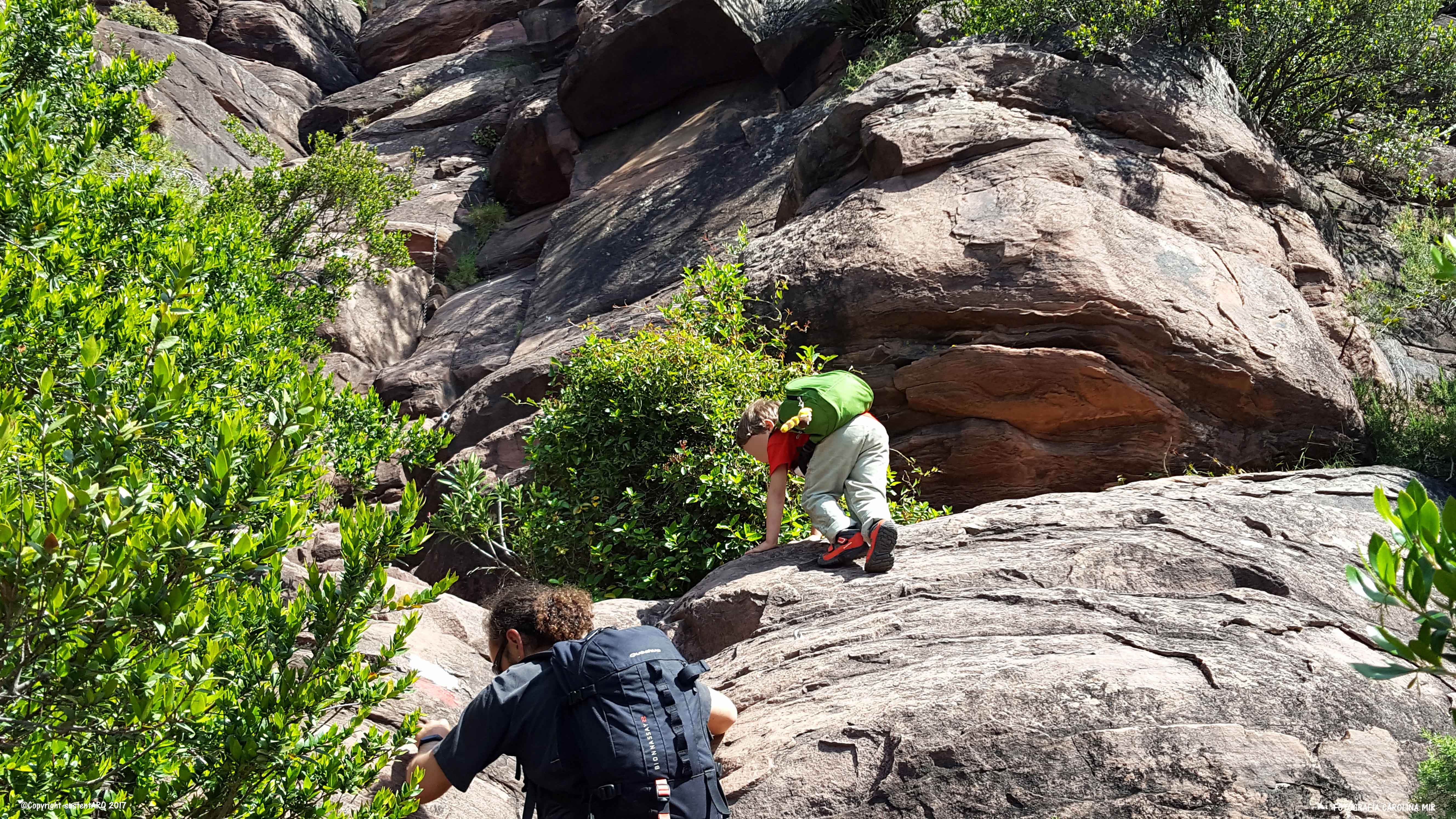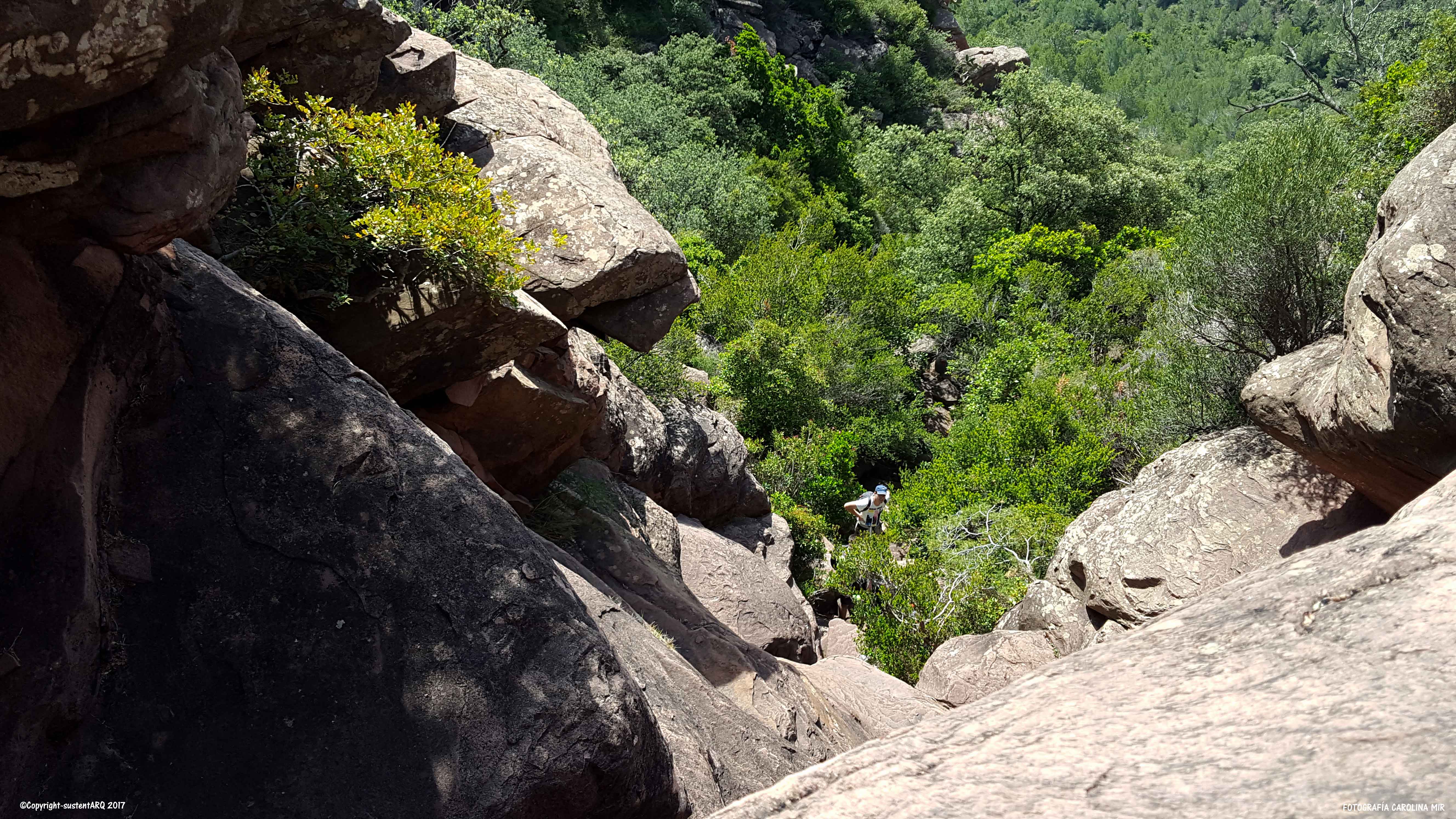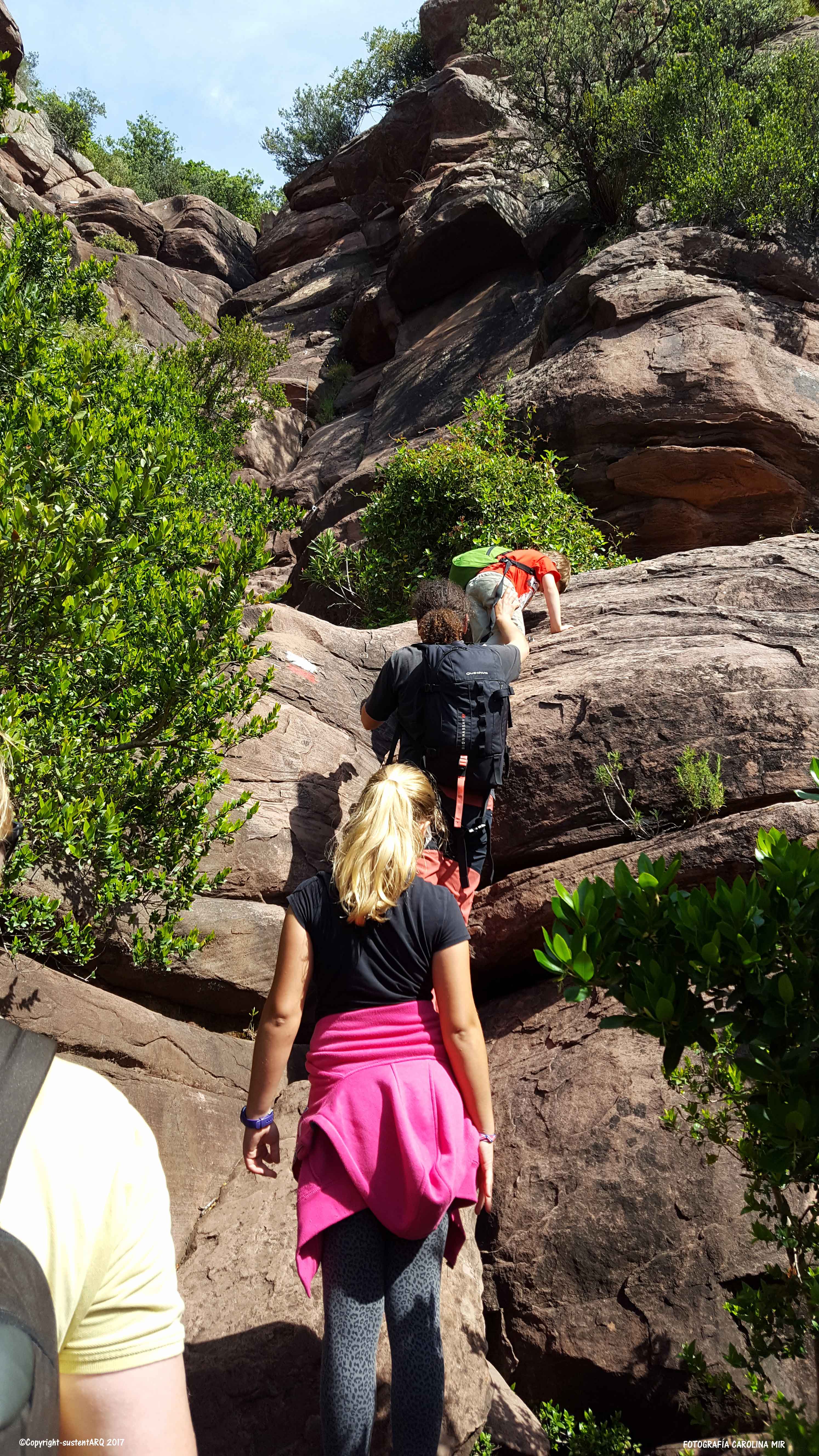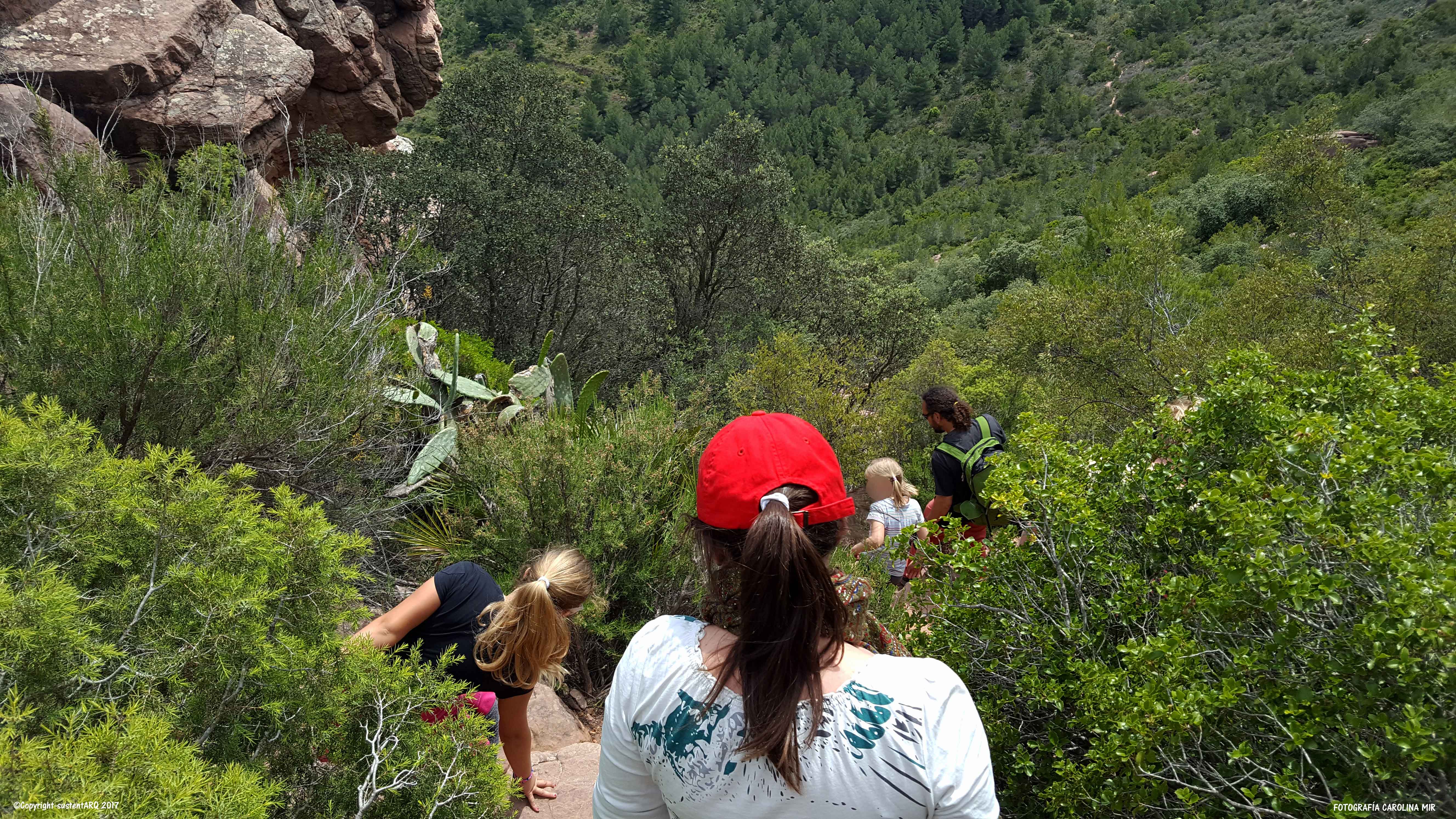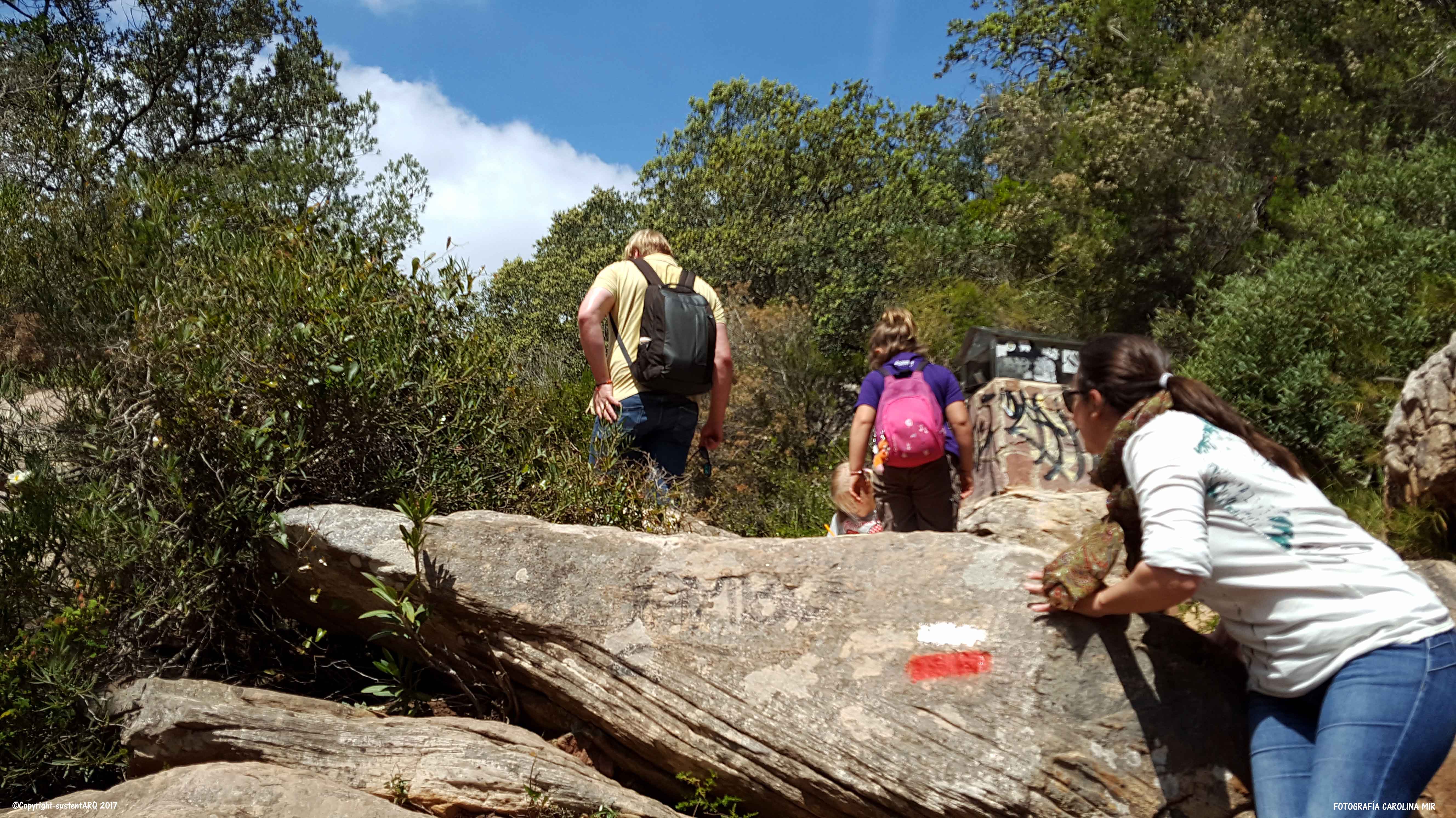 A las 10h30 de la mañana nos pusimos en marcha. Primero por un sendero por el bosque entre matorrales. Y el segundo tramo ya trepando por la roca.
