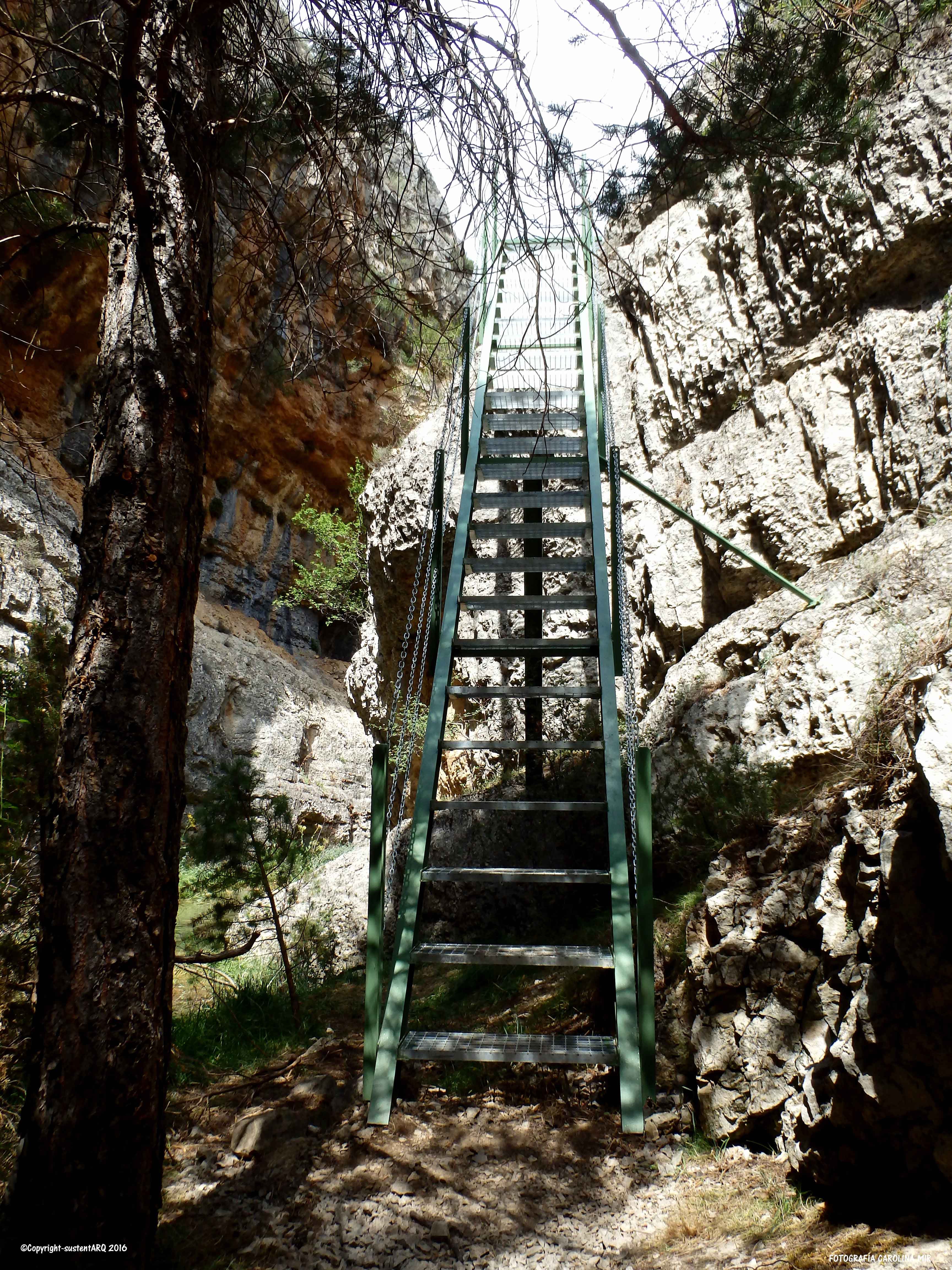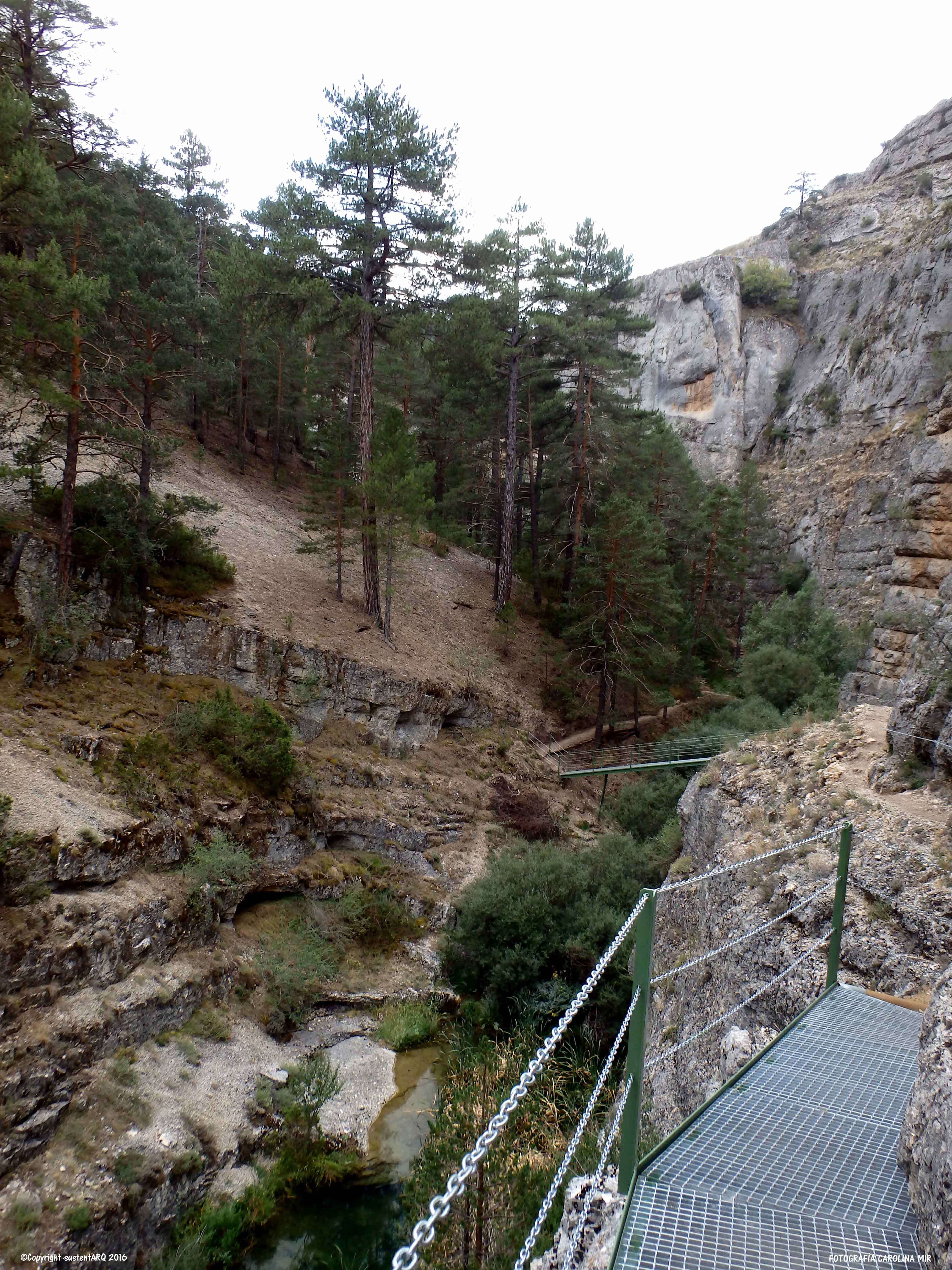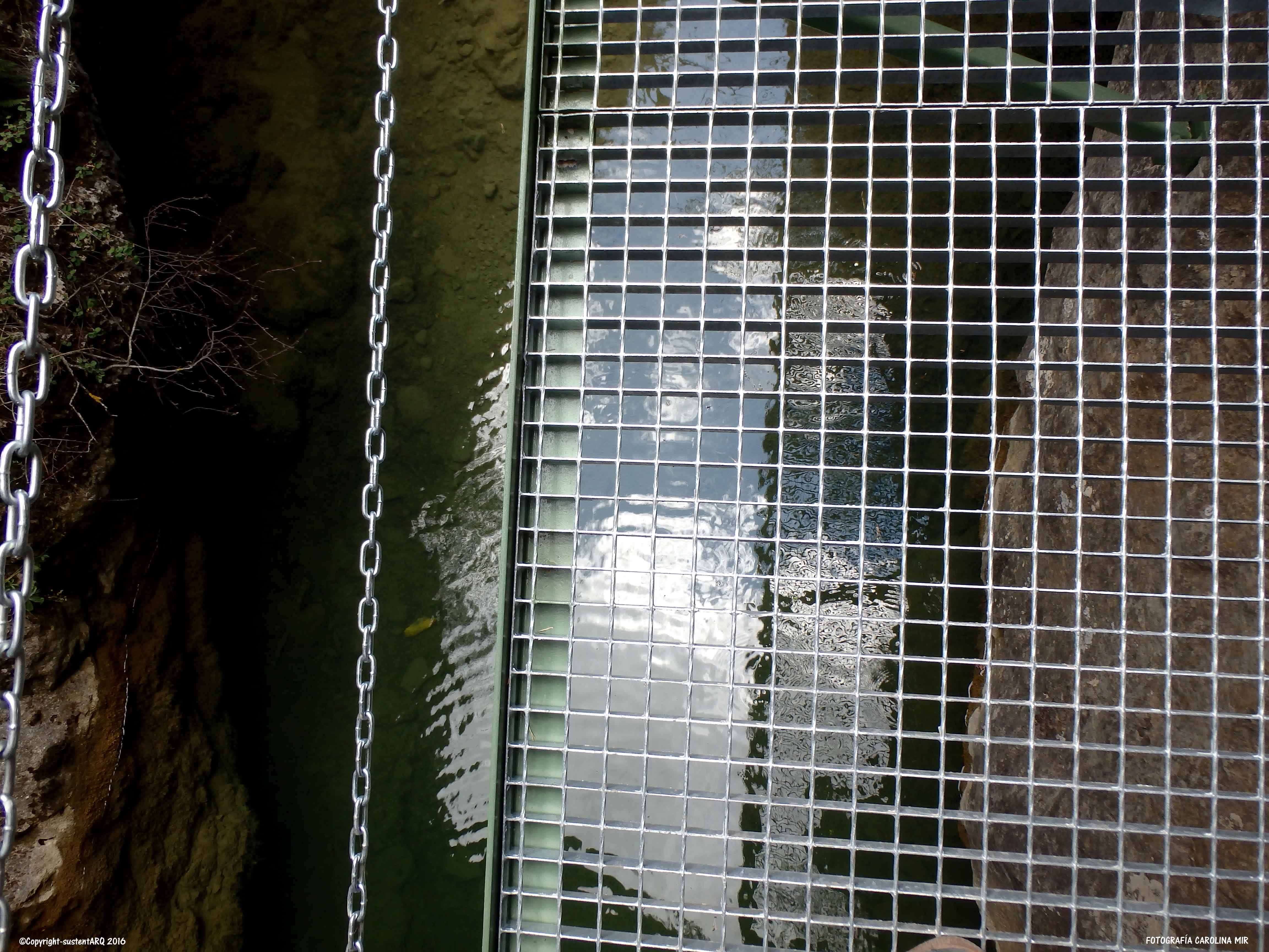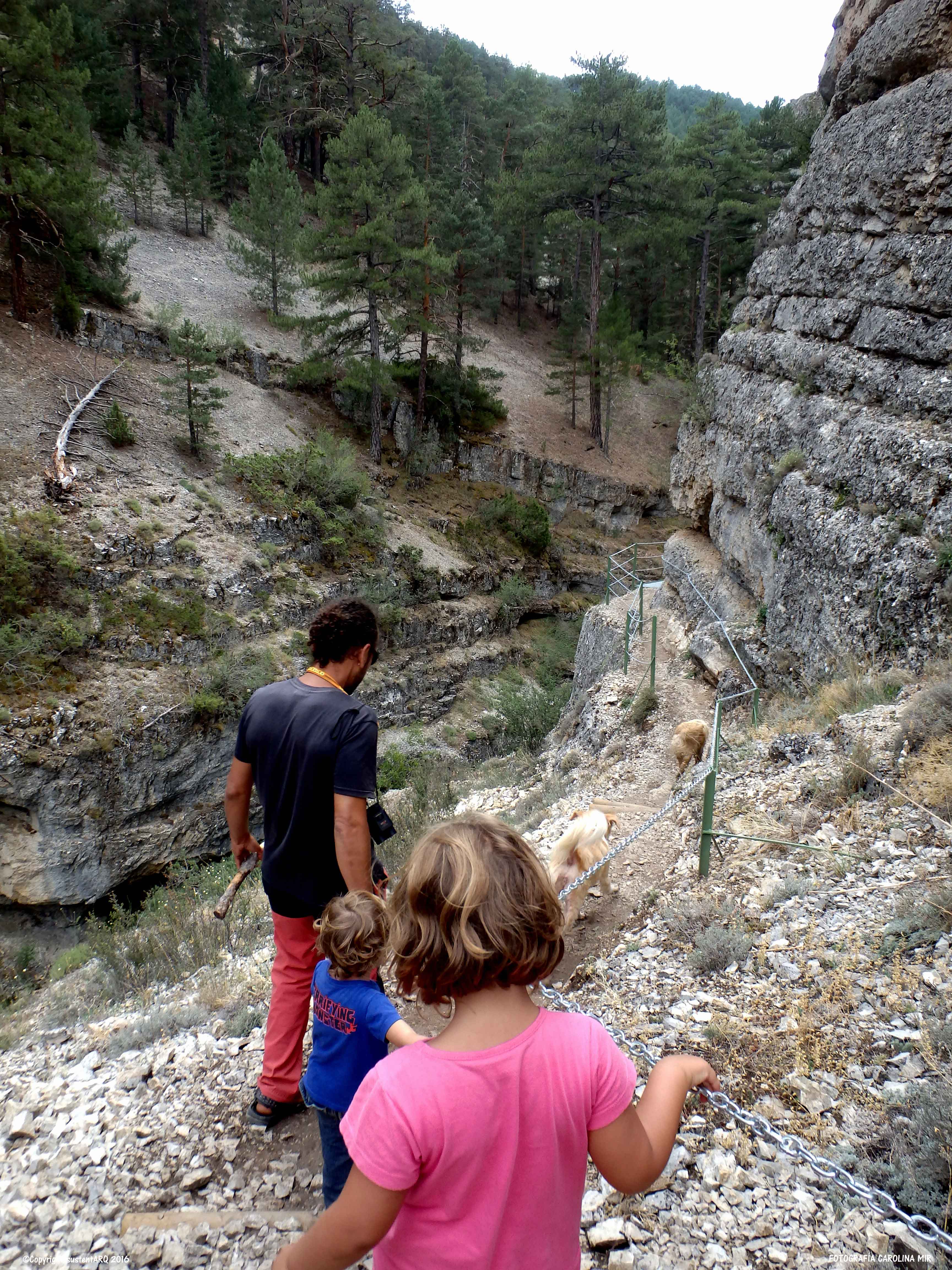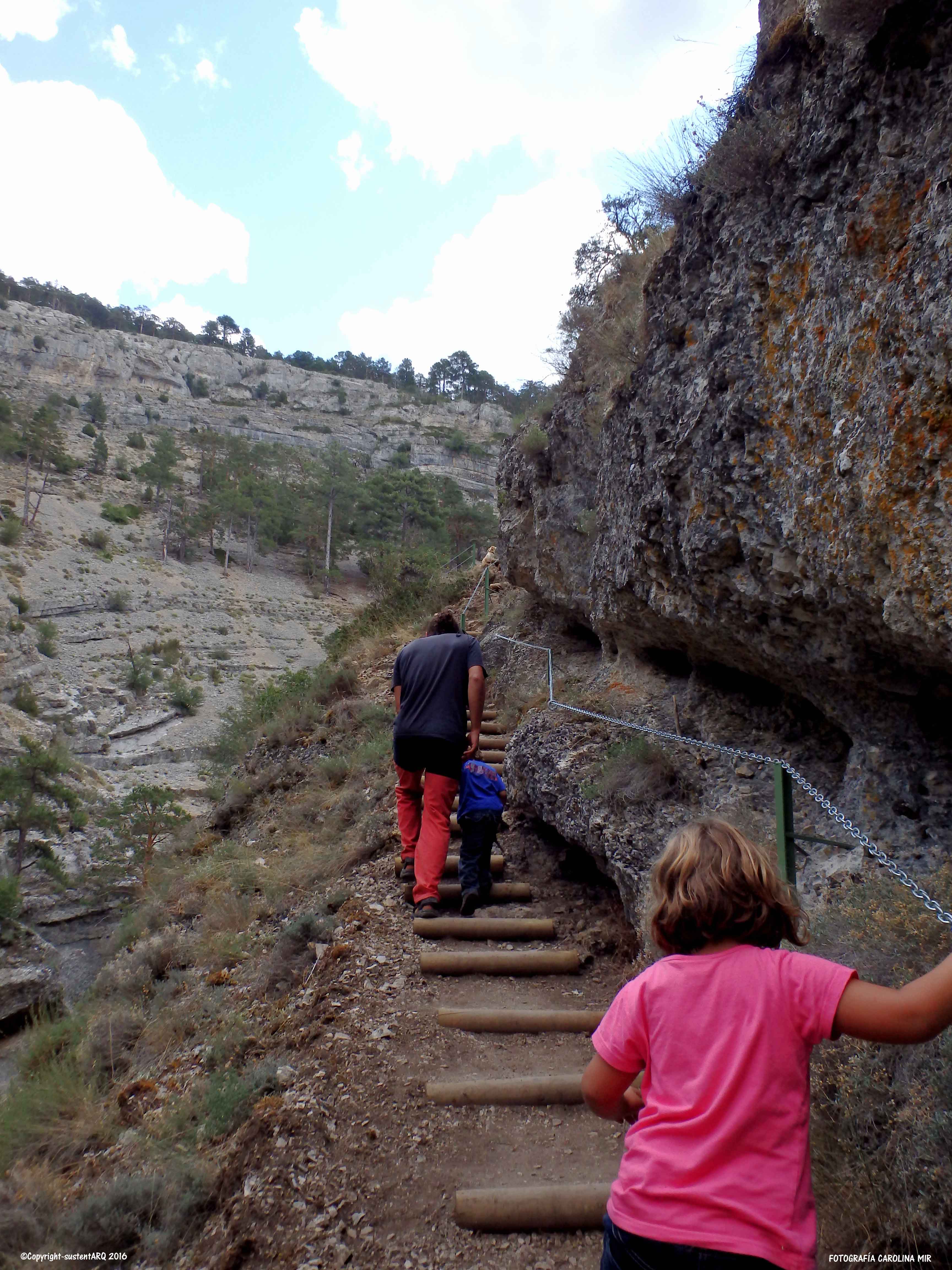 Pasado este punto, el recorrido discurre en algunos tramos por al lado o por encima del agua, y para ello, han acondicionado el terreno con cadenas, barandillas, escaleras y puentes metálicos, que no conllevan ningún peligro, aunque no hay que perder de vista a los nanos. También han arreglado algunas subidas con escalones de madera.