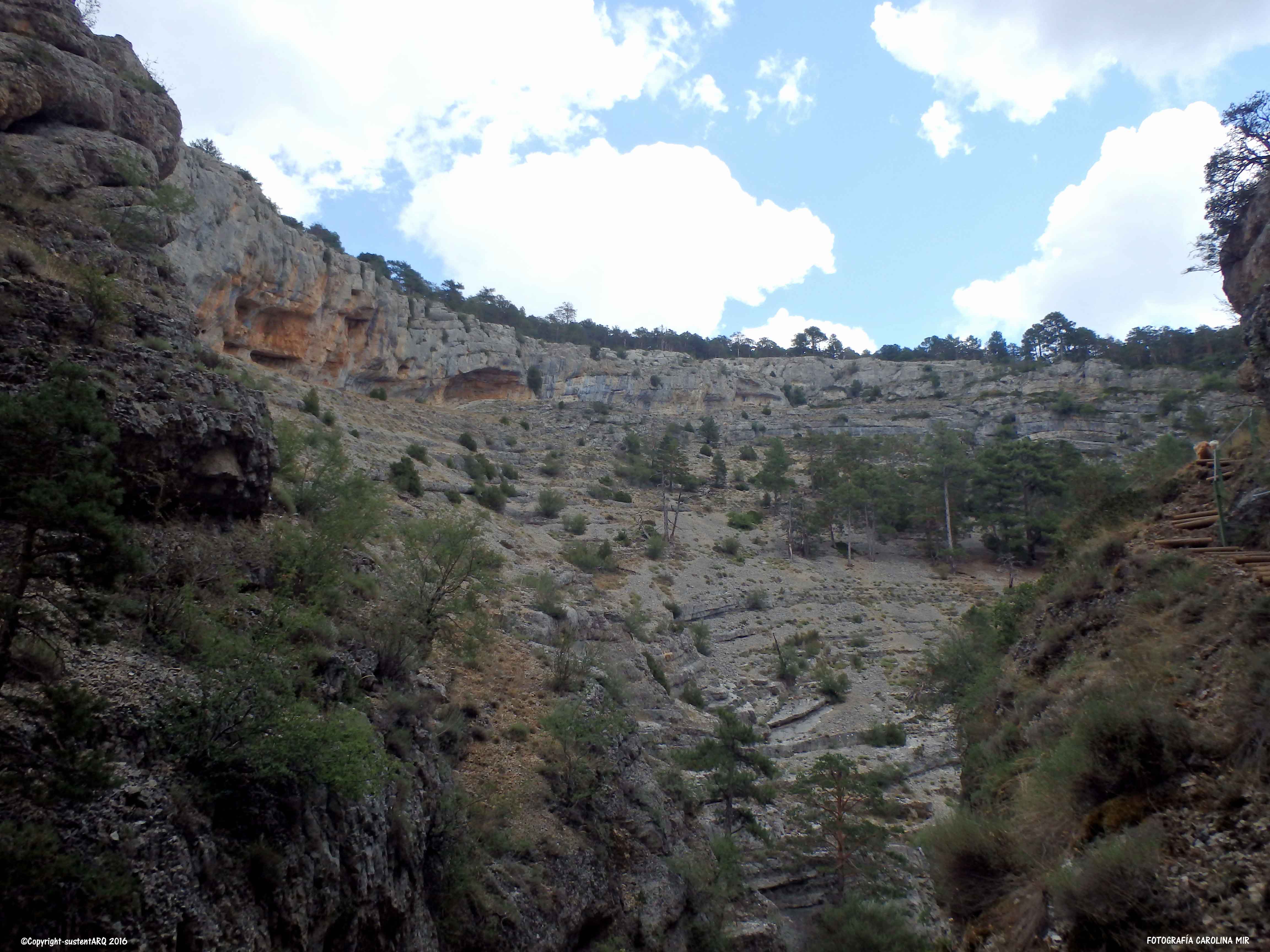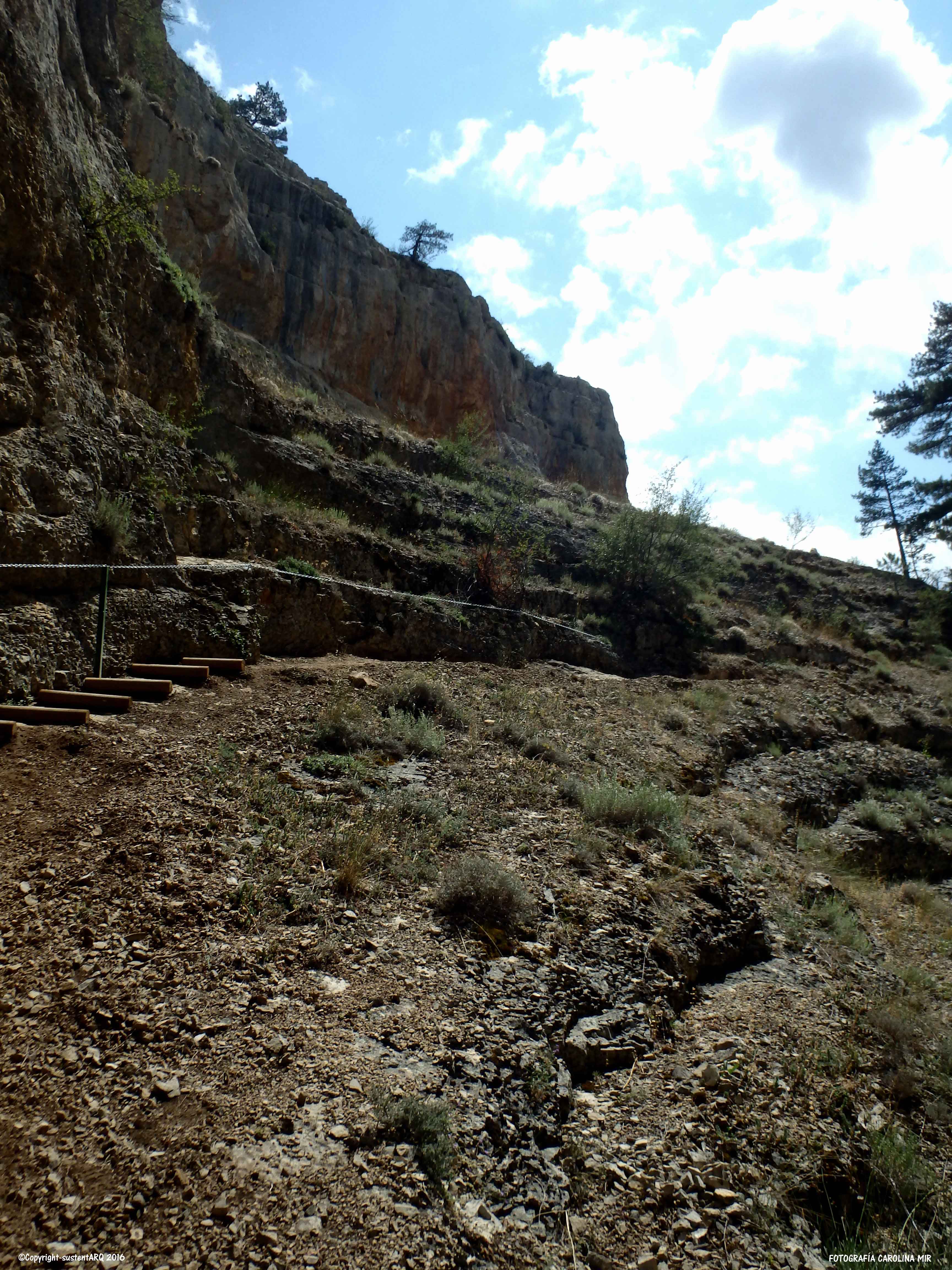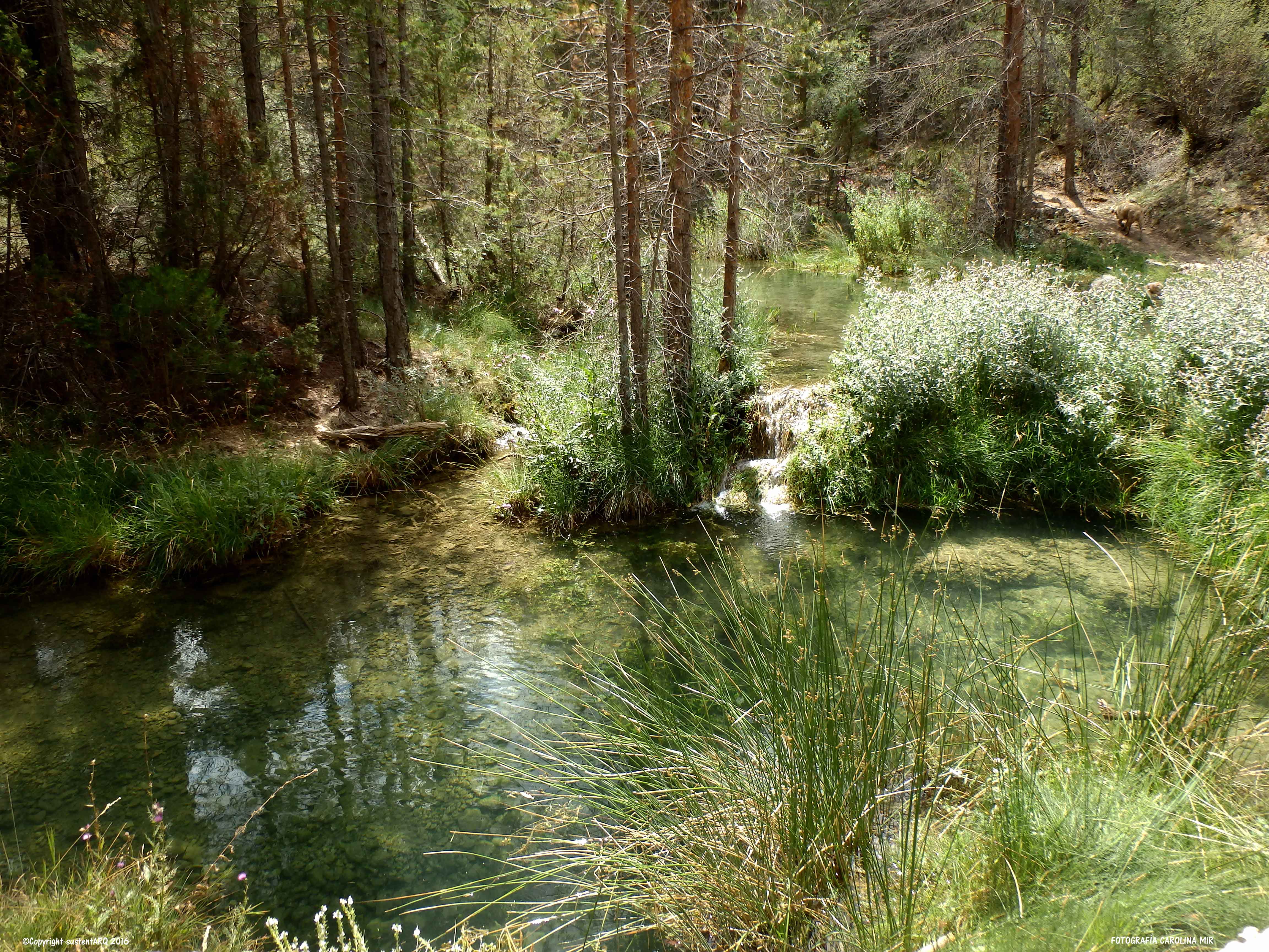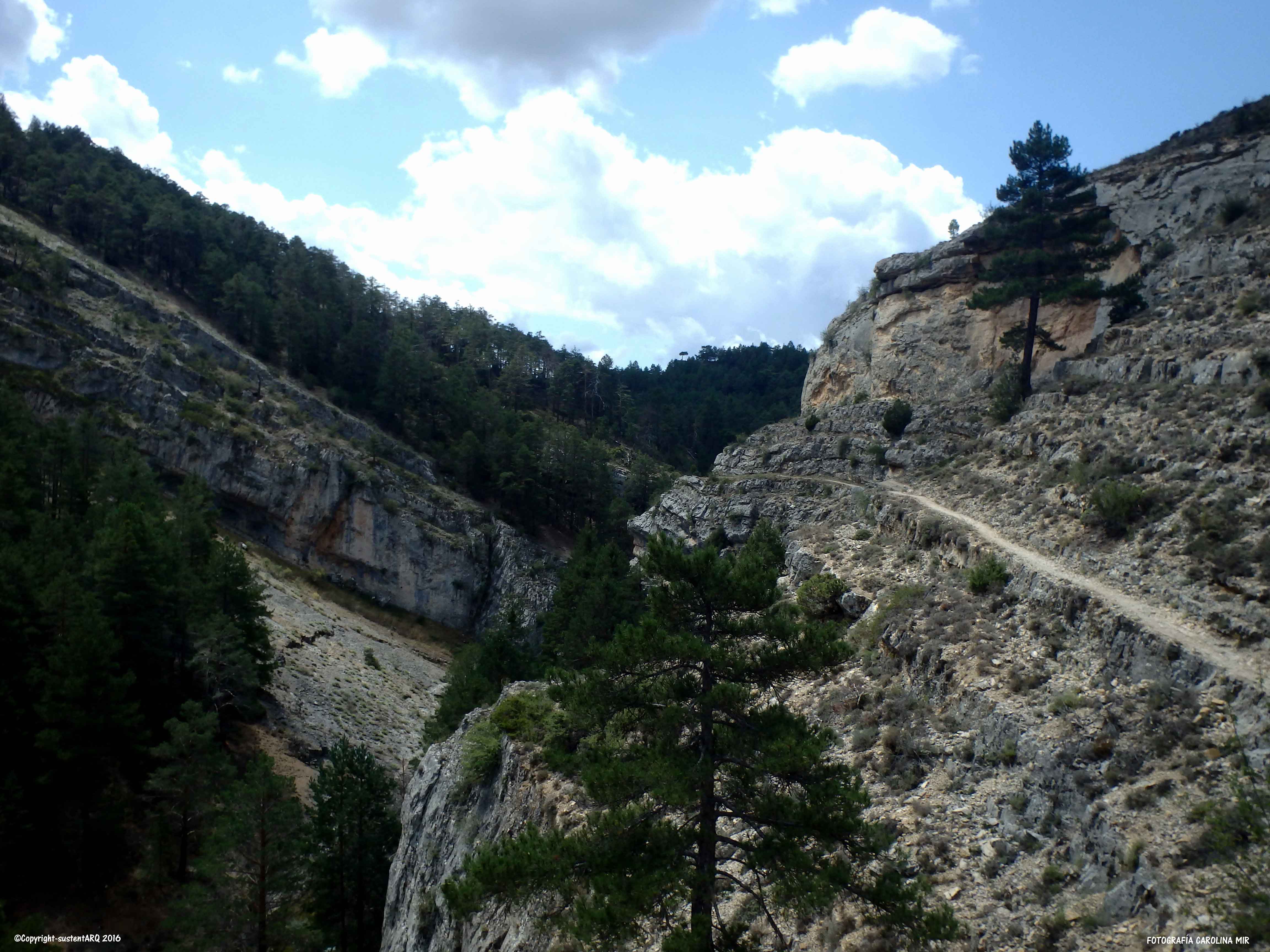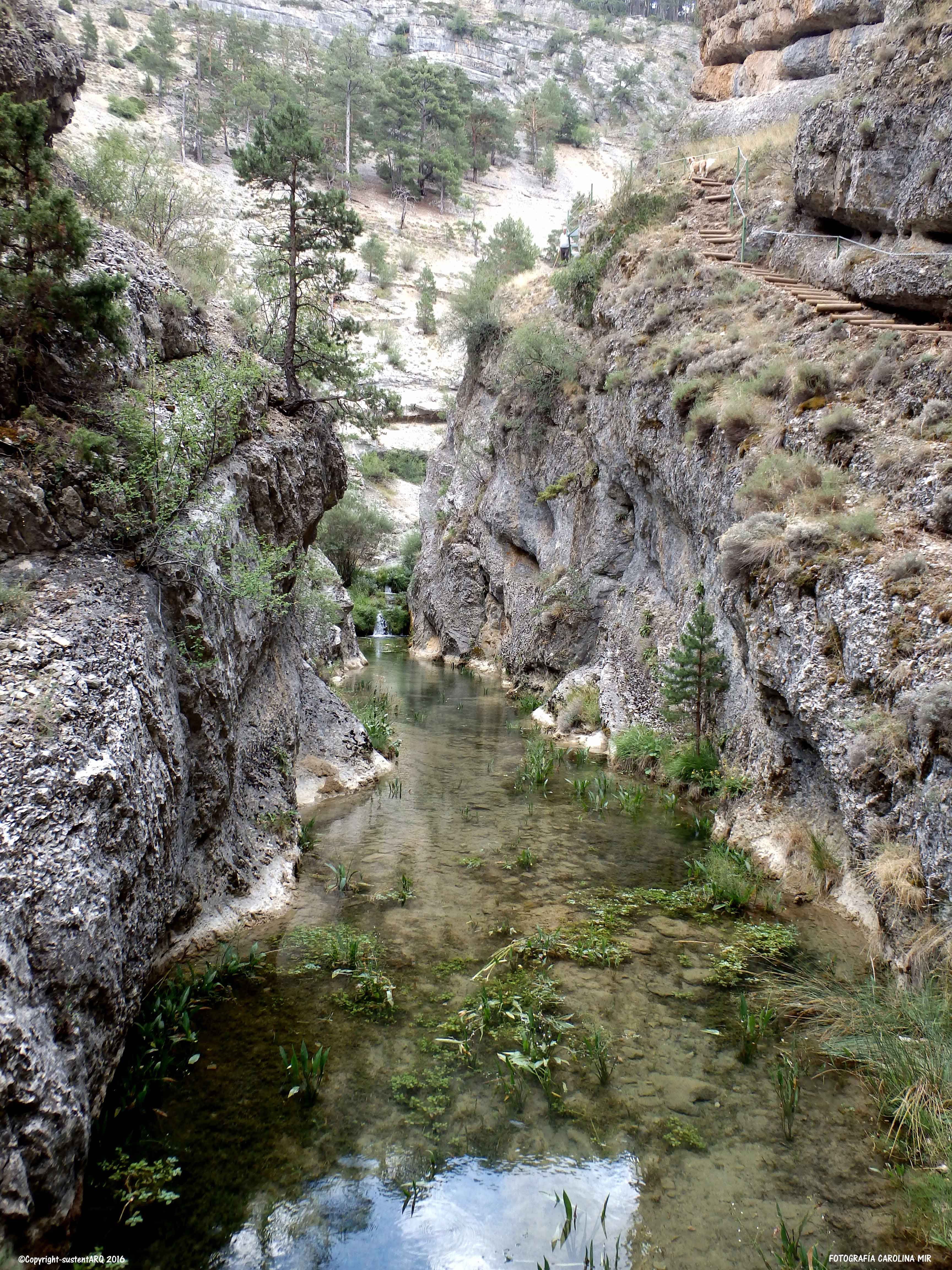 La ruta comienza en CALOMARDE. Cruzamos todo el pueblo hasta llegar al final, por un sendero a mano derecha, donde ahora han cortado el paso a los vehículos, e iniciamos la ruta pasando por la PRESA DE LOS AHOGADOS. Desde aquí andamos unos 15 minutos hasta llegar al inicio de la subida al punto más alto de la ruta, y desde donde empezaremos la bajada para adentrarnos en el CAÑÓN DEL RÍO BLANCO.