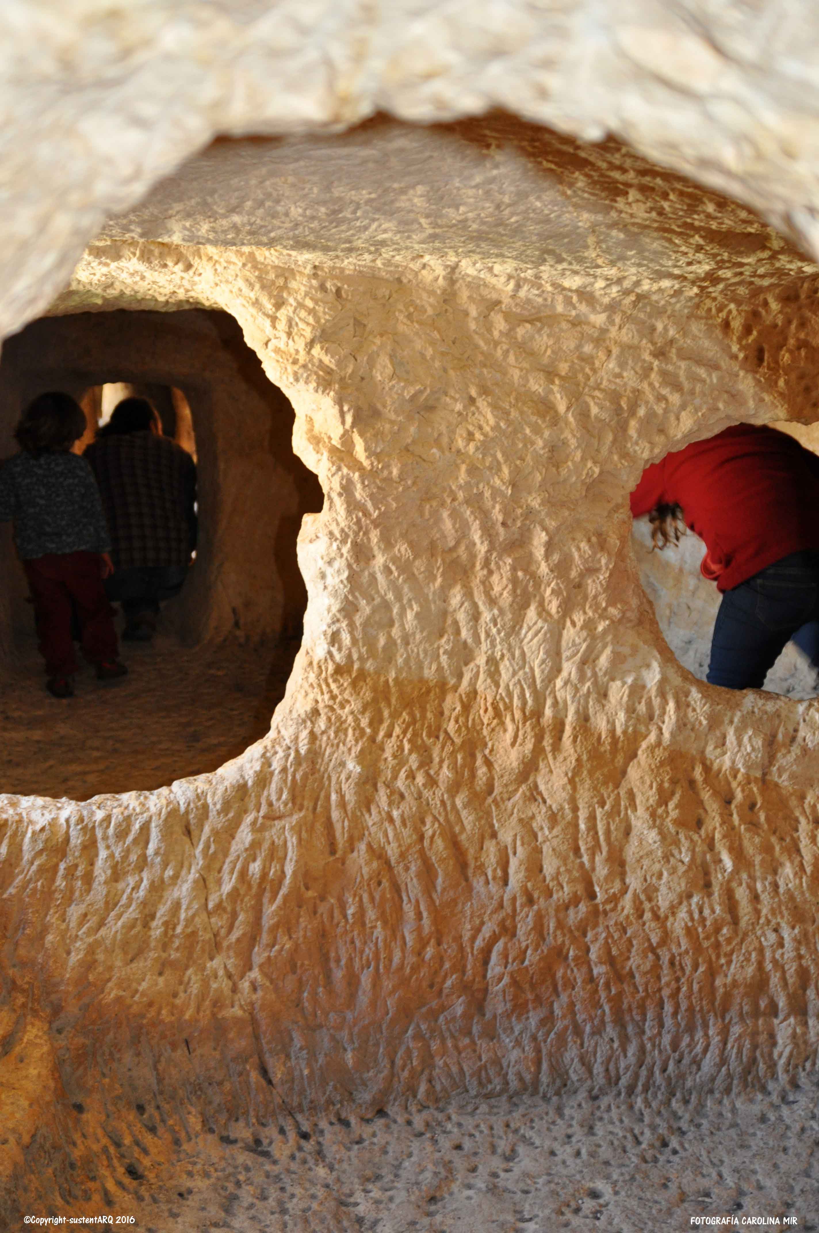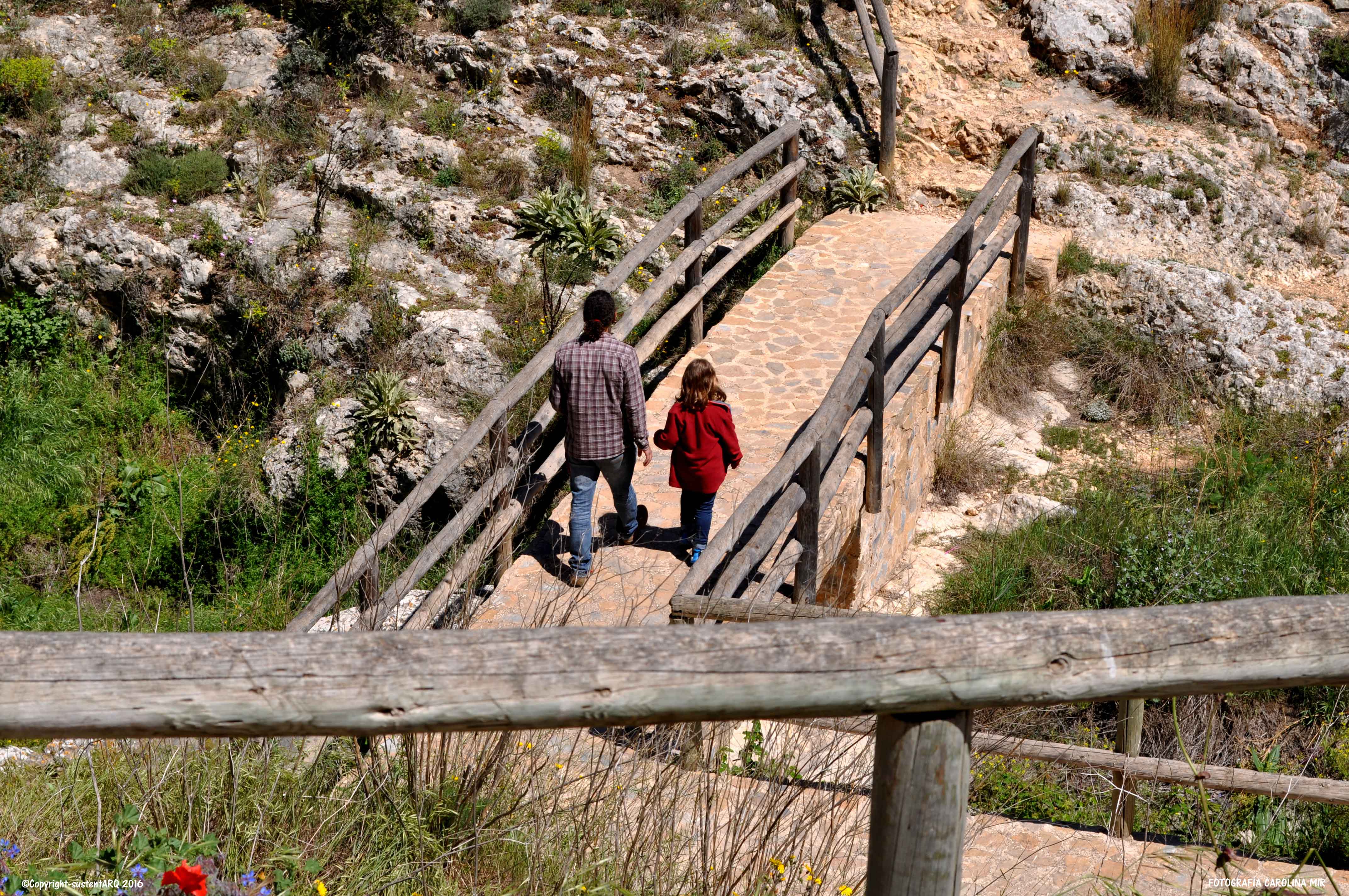 A partir de aquí unas escaleras nos conducen al fondo del barranco, desde donde ascendemos por una senda, hasta las escaleras de acceso a les COVETES donde un guía nos introduce en la historia de éstas.