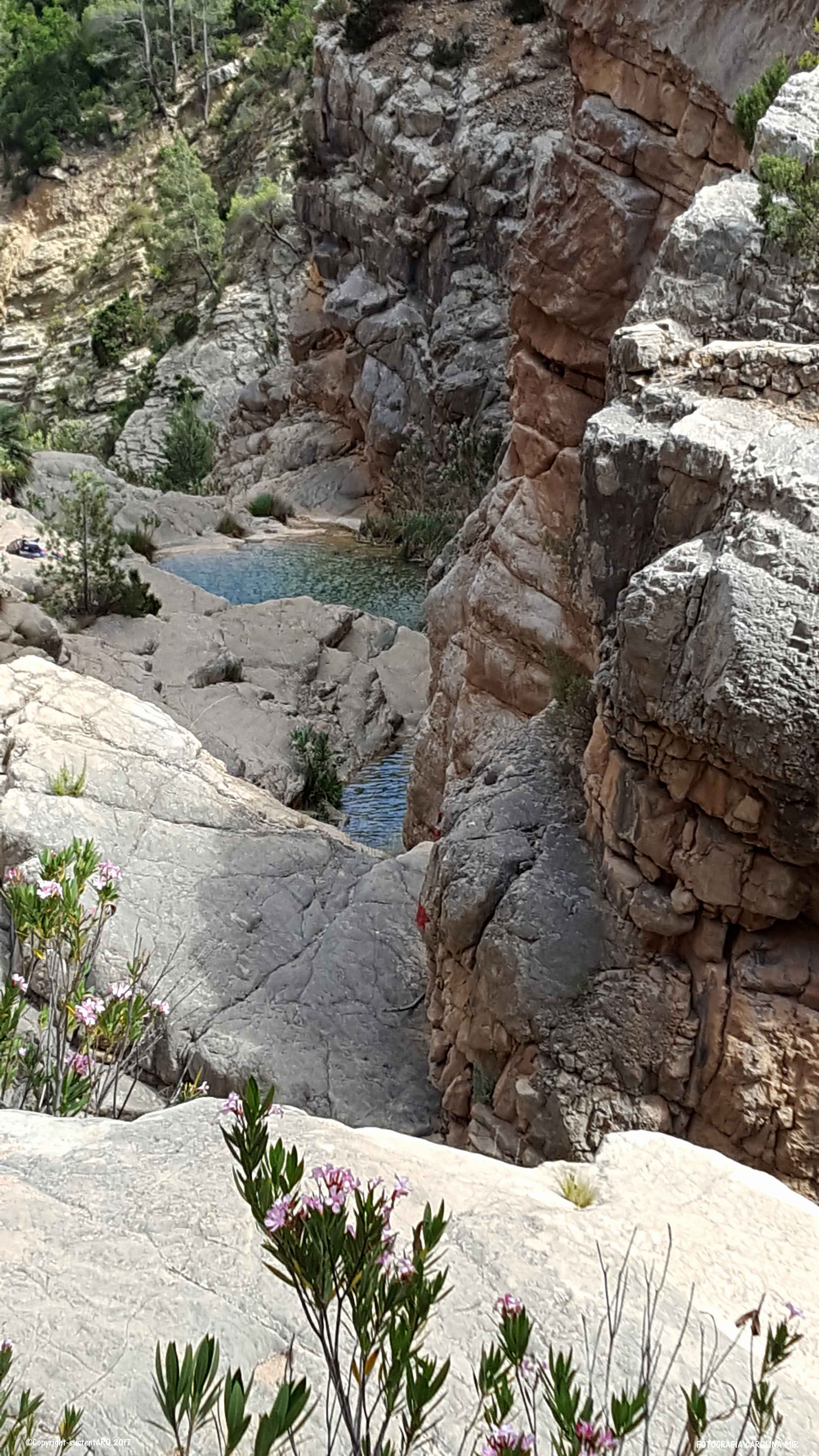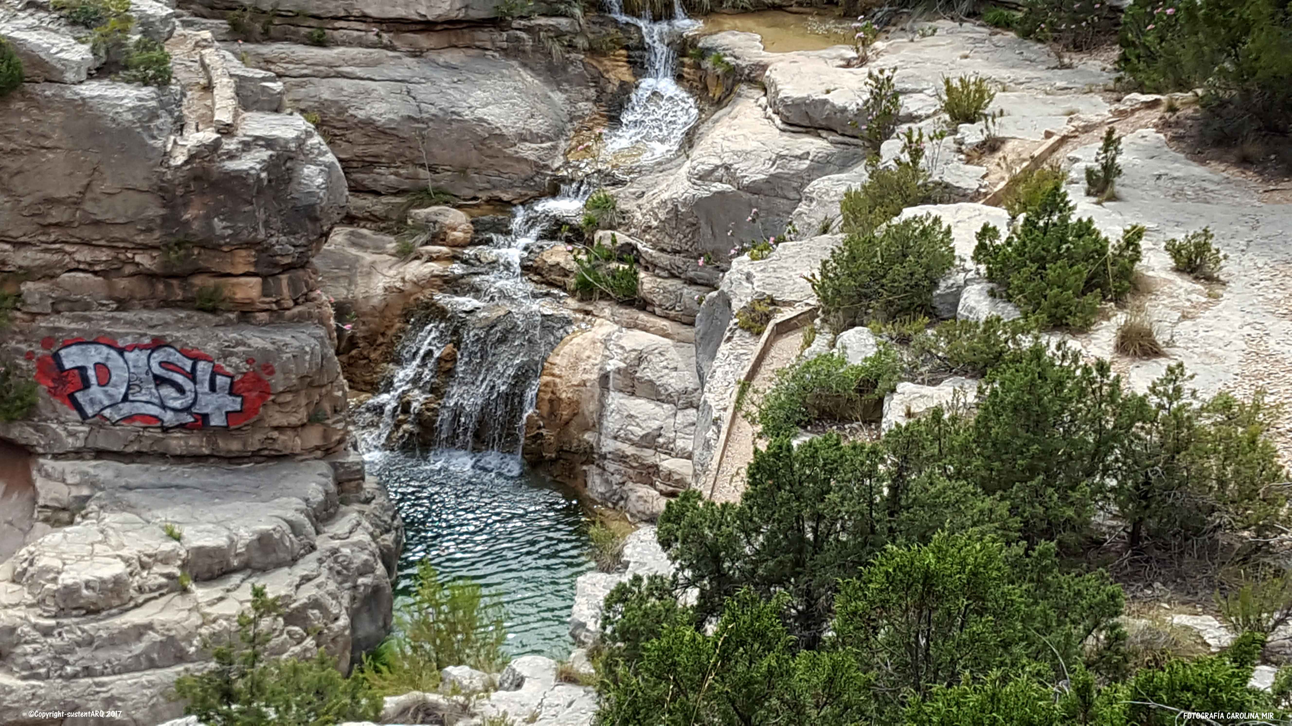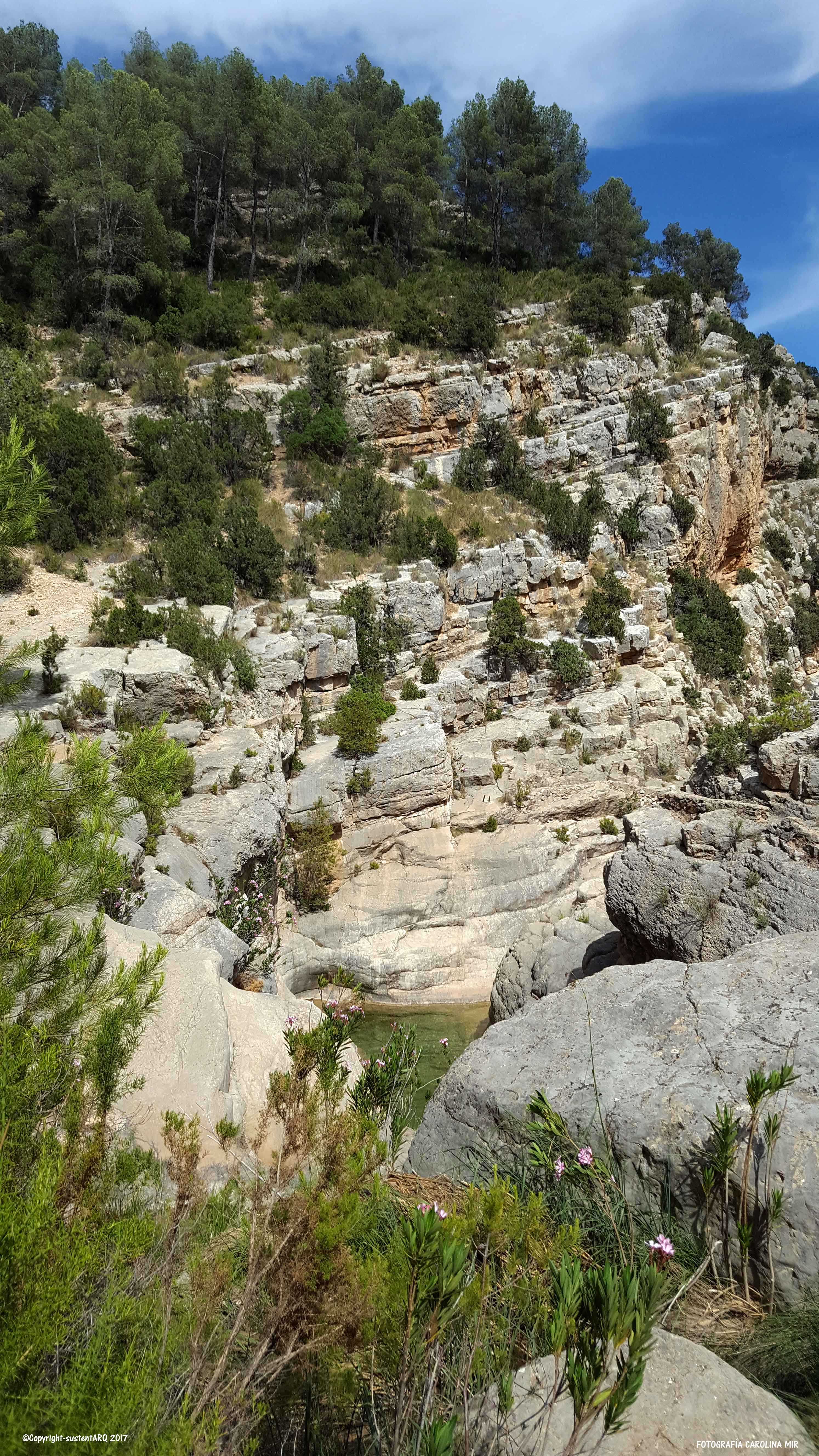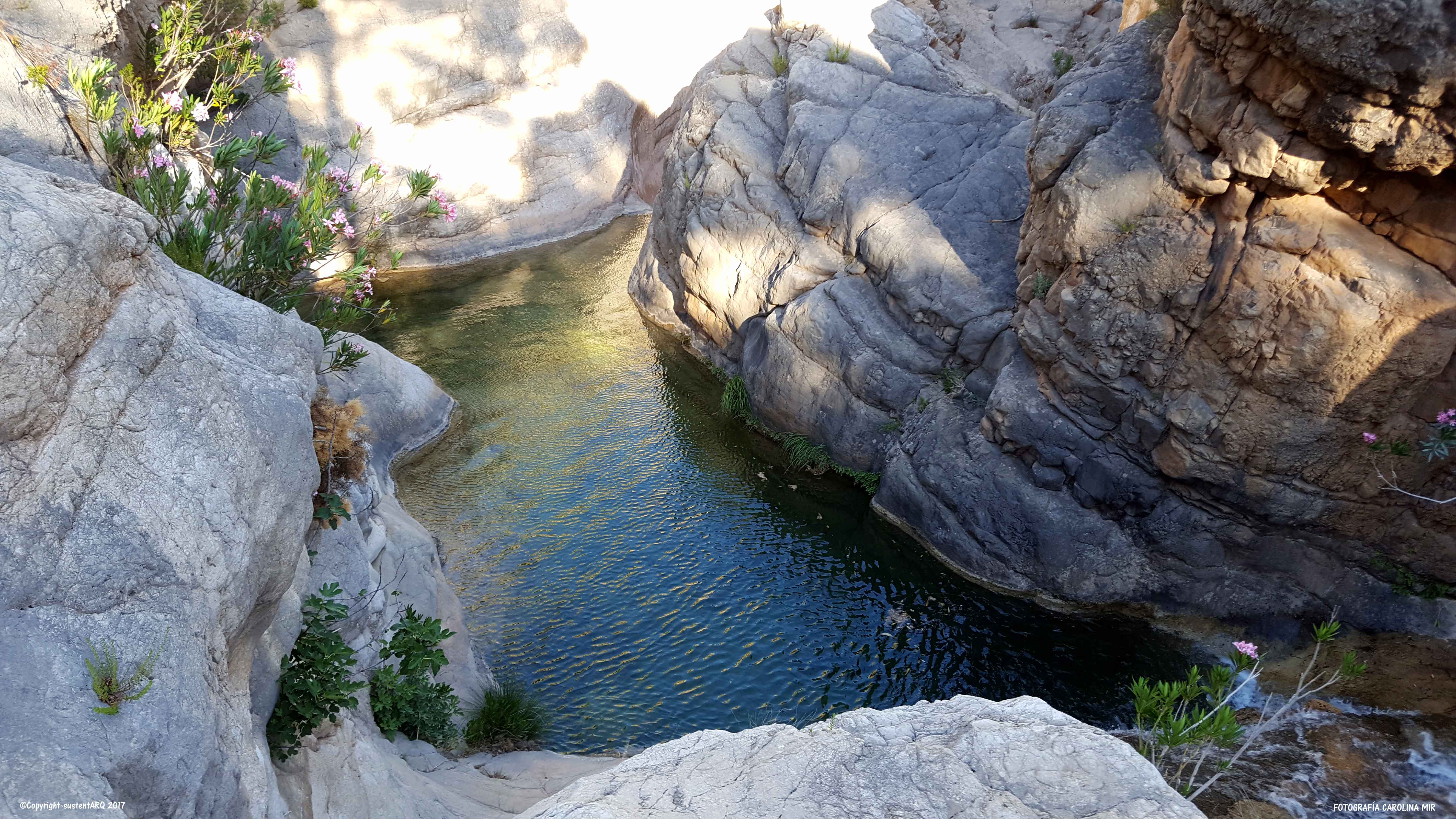 La primera no es accesible con los nanos, porque hay que andar por la roca, por unos pasos muy estrechos y por encima de una antigua acequia. Y hay pasos complicados donde tienes una caída muy grande. En esta zona se baña la gente por la mañana, porque el sol entra y aunque el agua está muy fresquita, se puede bañar uno tranquilamente. Pero por la tarde las propias paredes que encañonan las pozas, hacen sombra sobre ellas y ya no es tan agradable estar allí porque hace más frío.