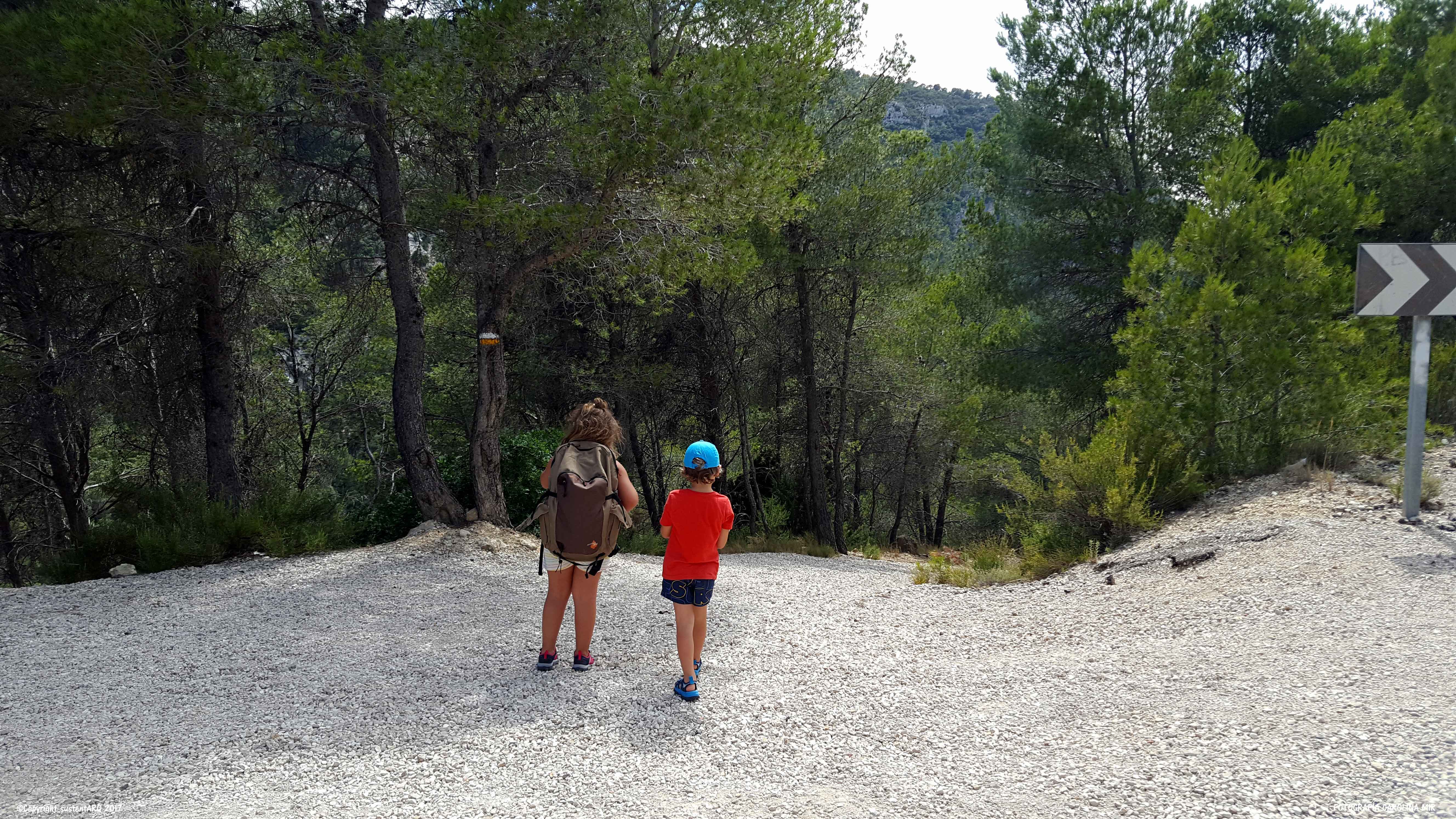 Cuando ya salimos del bosque, el sendero discurre pegado al barranco, con una buena caída hacia éste. No hay ningún tipo de protección y el camino es estrecho. Con precaución y llevando a los nanos con cuidado, por el lado de la montaña y siempre acompañándolos, no hay ningún riesgo.
